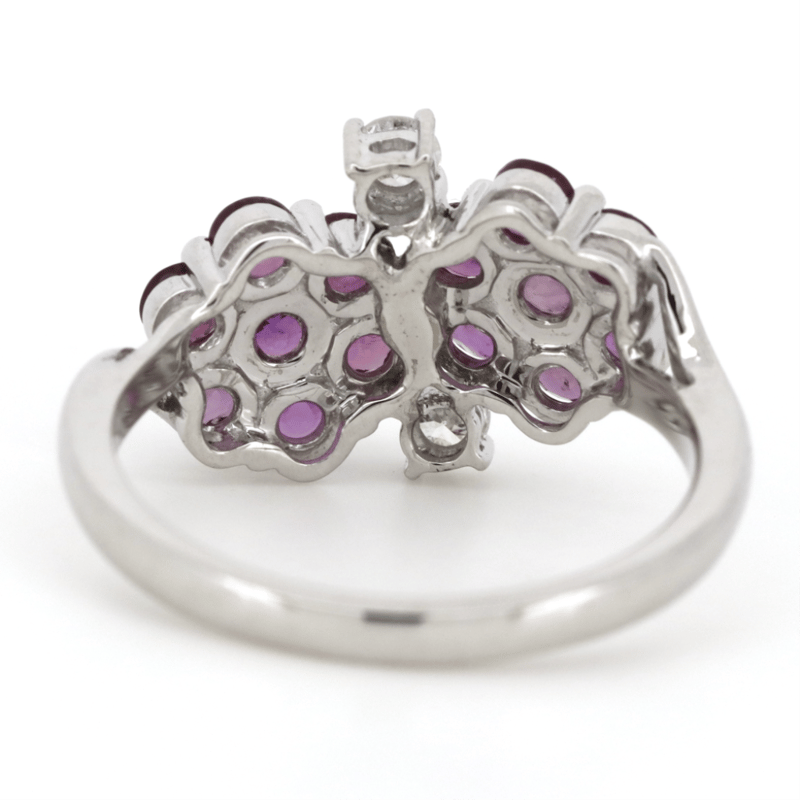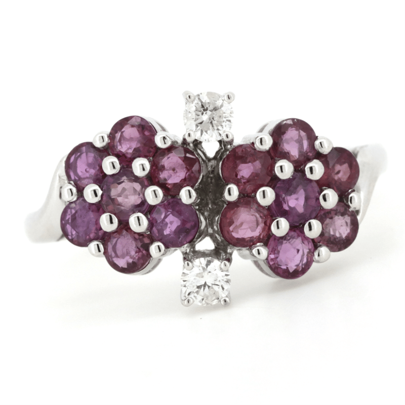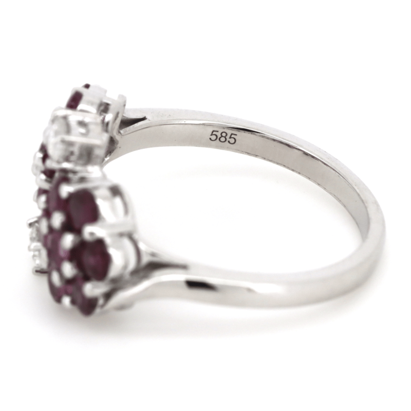 14K WHITE GOLD, RUBY AND DIAMOND, FLORAL RING. The Centre Features, One Oval Faceted Cut, Light Fancy Yellow, Diamond (0.46Ct, Si1-Si2 Clarity), 4 Claw Set. Flanking The Centre Are, 2 Pear Brilliant Cut, Light Fancy Yellow, Diamonds (0.40Ct Tdw, Si1-Si2 Clarity), 3 Claw Set In Yellow Gold. Decorating The Band Are, 12 Round Brilliant Cut, Diamonds (0.10Ct Tdw, G-H Colour, Si1-Si2 Clarity), Bead Set In White Gold. Ring Size N 1/2. Valuations Provided by an Independent Third-Party Professional Not Directly Associated With Lloyds Auctions at AUD $$11,300.00This valuation has been conducted by an independent third-party professional. The valuation amount is an assessment by the issuing valuer and does not reflect the auction value of the item. Any inquiries regarding the valuation should be directed to the issuing valuer (refer to contact details on the certificate), as Lloyds Auctions has no affiliation or influence over the valuation, the valuer, or the stated amount. Condition: Good - Refer Images 0+20