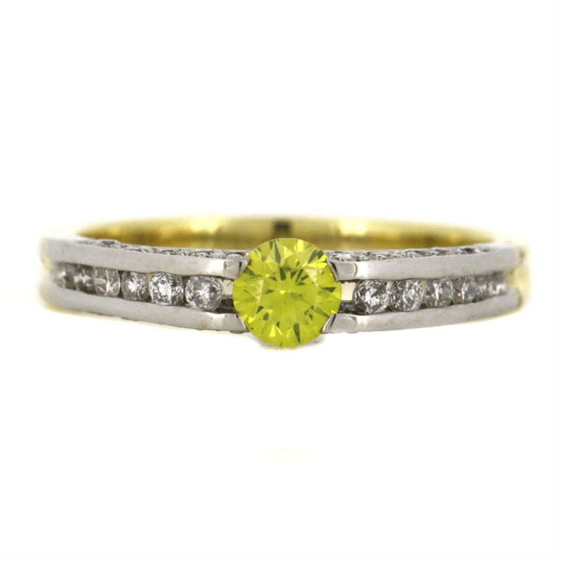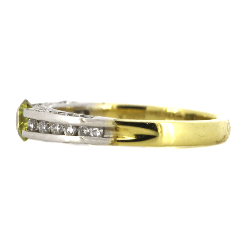 The Centre Features, One Round Brilliant Cut, Fancy Vivid Yellow Diamond (0.30Ct, Si Clarity), Bead Set. Encompassing The Centre And Decorating The Band Are, 32 Round Brilliant Cut, Diamonds (0.30Ct Tdw, G-H Colour, Si Clarity), Channel/Bead Set. Ring Size L. Condition: Pre-Owned.