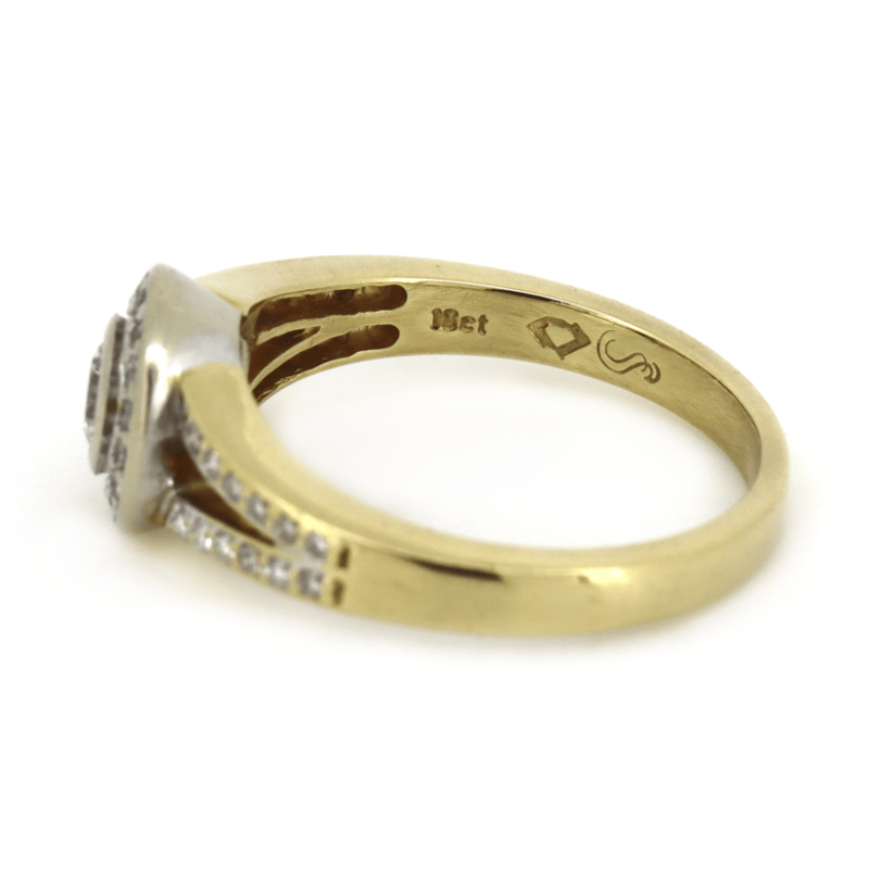 18K YELLOW/WHITE GOLD AND DIAMOND, HALO SPLIT BAND RING. The Centre Features, One Round Brilliant Cut, Diamond (0.40Ct Tdw, H-I Colour, Si1-Si2 Clarity), Bezel Set. Surrounding The Centre In A Halo And Decorating The Split Band Are, 40 Round Brilliant Cut, Diamonds (0.25Ct Tdw, H-I Colour, Si1-Si2 Clarity), Micro-Bead Set. Ring Size P. Valuations Provided by an Independent Third-Party Professional Not Directly Associated With Lloyds Auctions at AUD $$6,800.00 This valuation has been conducted by an independent third-party professional. The valuation amount is an assessment by the issuing valuer and does not reflect the auction value of the item. Any inquiries regarding the valuation should be directed to the issuing valuer (refer to contact details on the certificate), as Lloyds Auctions has no affiliation or influence over the valuation, the valuer, or the stated amount. Condition: Good - Refer Images 0 +1502