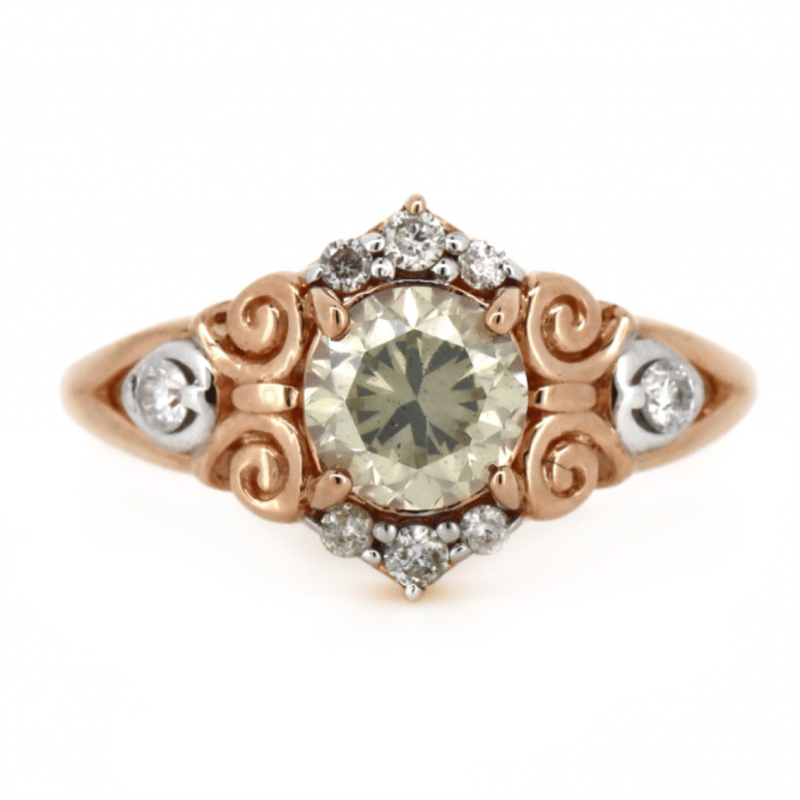 14K ROSE GOLD, CHAMPAGNE DIAMOND AND DIAMOND, RING.