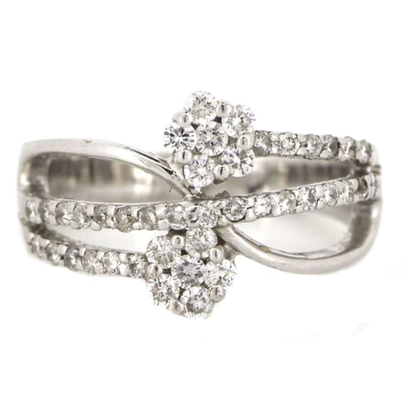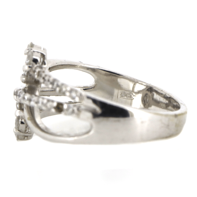 9K WHITE GOLD AND DIAMOND, TWIST DRESS RING.