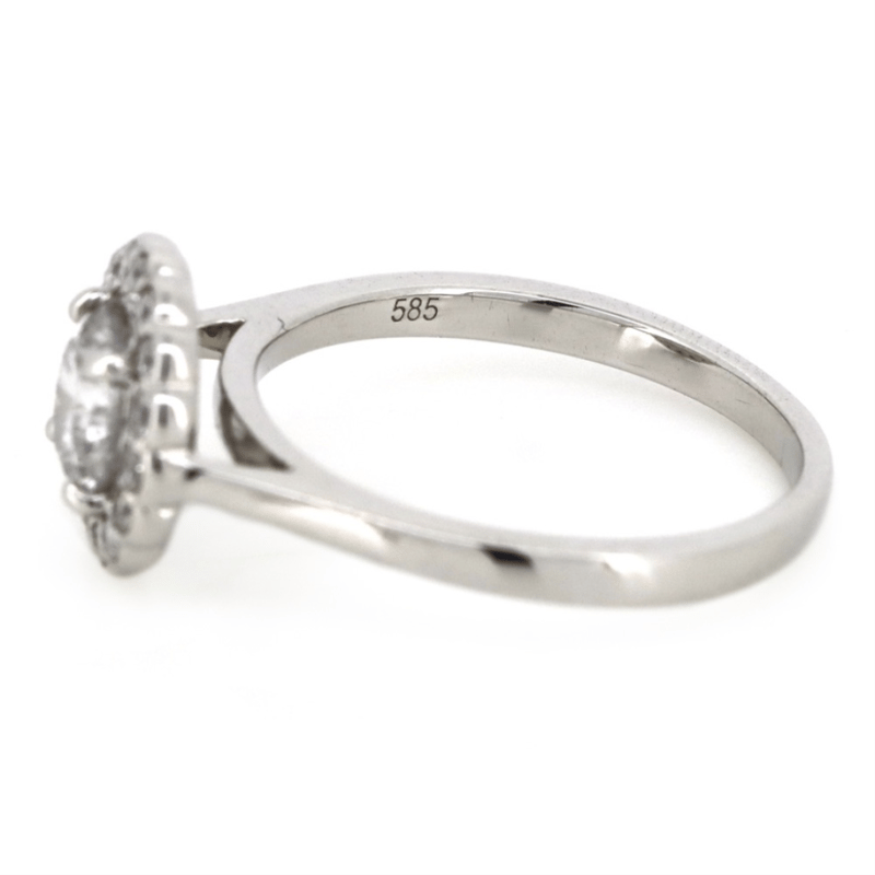 14K WHITE GOLD AND DIAMOND, HALO DRESS RING.