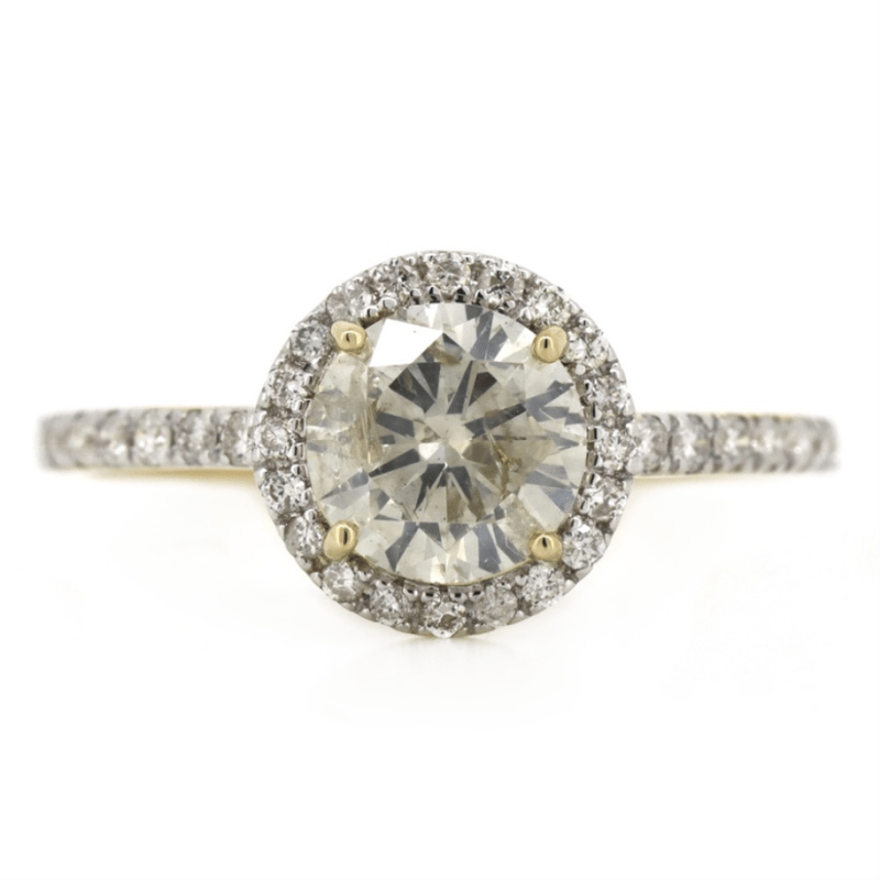 14K YELLOW GOLD AND DIAMOND, HALO RING. The Centre Features, One Round Brilliant Cut, Diamond (1.02Ct, H-I Colour, Si1-Si2 Clarity), 4 Claw Set. Surrounding The Centre In A Halo And Decorating The Band Are, 34 Round Brilliant Cut, Diamonds (0.22Ct Tdw, G-H Colour, Si1-Si2 Clarity), Claw Set. Ring Size M ½. Valuations Provided by an Independent Third-Party Professional Not Directly Associated With Lloyds Auctions at AUD $$15,000.00This valuation has been conducted by an independent third-party professional. The valuation amount is an assessment by the issuing valuer and does not reflect the auction value of the item. Any inquiries regarding the valuation should be directed to the issuing valuer (refer to contact details on the certificate), as Lloyds Auctions has no affiliation or influence over the valuation, the valuer, or the stated amount. Condition: Good - Refer Images 0+148