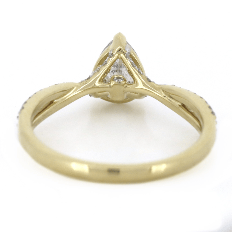 14K YELLOW GOLD AND DIAMOND, CROSS OVER DRESS RING. The Centre Features, One Pear Brilliant Cut, Diamond (0.74Ct, H-I Colour, I1 Clarity), 3 Claw Set. Decorating The Band And Rail Are, 50 Round Brilliant Cut, Diamonds (0.237Ct Tdw, G-K Colour, Si-I2+ Clarity), Bead Set. Ring Size M. Valuations Provided by an Independent Third-Party Professional Not Directly Associated With Lloyds Auctions at AUD $$15,200.00This valuation has been conducted by an independent third-party professional. The valuation amount is an assessment by the issuing valuer and does not reflect the auction value of the item. Any inquiries regarding the valuation should be directed to the issuing valuer (refer to contact details on the certificate), as Lloyds Auctions has no affiliation or influence over the valuation, the valuer, or the stated amount. Condition: Good - Refer Images 0+143