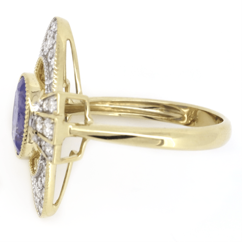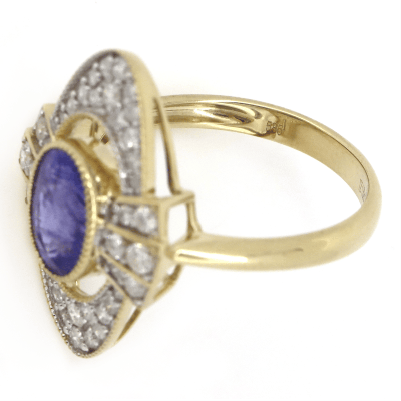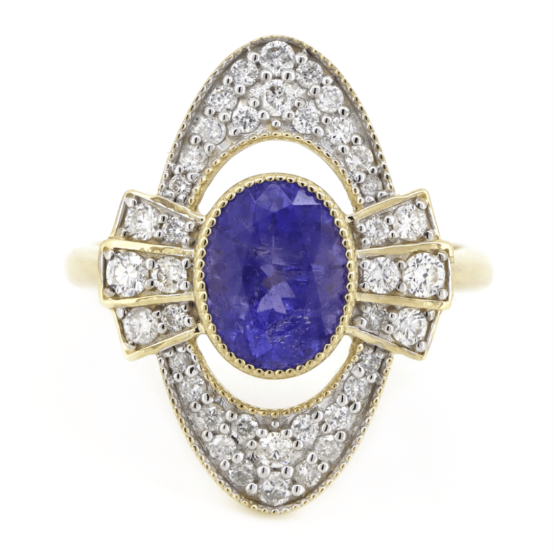 14K YELLOW GOLD, TANZANITE AND DIAMOND, DECORATIVE RING. The Centre Features, One Oval Cut, Vivid Blue, Tanzanite (1.82Ct, Moderate Natural Inclusions), Bezel Set. Surrounding The Centre Are, 40 Round Brilliant Cut, Diamonds (0.52Ct Tdw, H-I Colour, Si-I1 Clarity), Claw Set. Ring Size N. Valuations Provided by an Independent Third-Party Professional Not Directly Associated With Lloyds Auctions at AUD $$11,400.00This valuation has been conducted by an independent third-party professional. The valuation amount is an assessment by the issuing valuer and does not reflect the auction value of the item. Any inquiries regarding the valuation should be directed to the issuing valuer (refer to contact details on the certificate), as Lloyds Auctions has no affiliation or influence over the valuation, the valuer, or the stated amount. Condition: Good - Refer Images 0+184