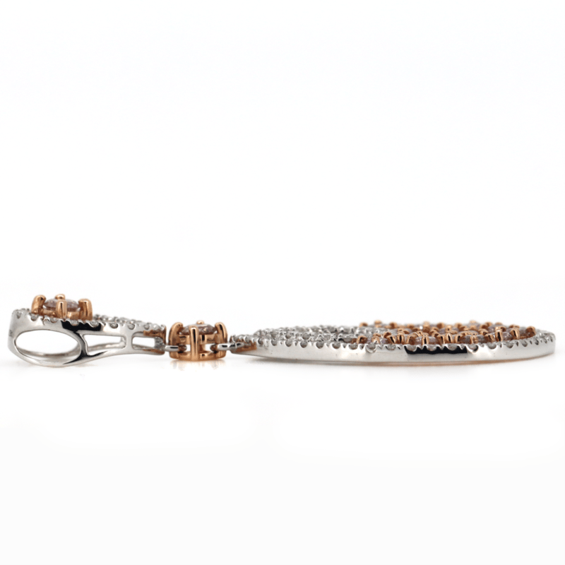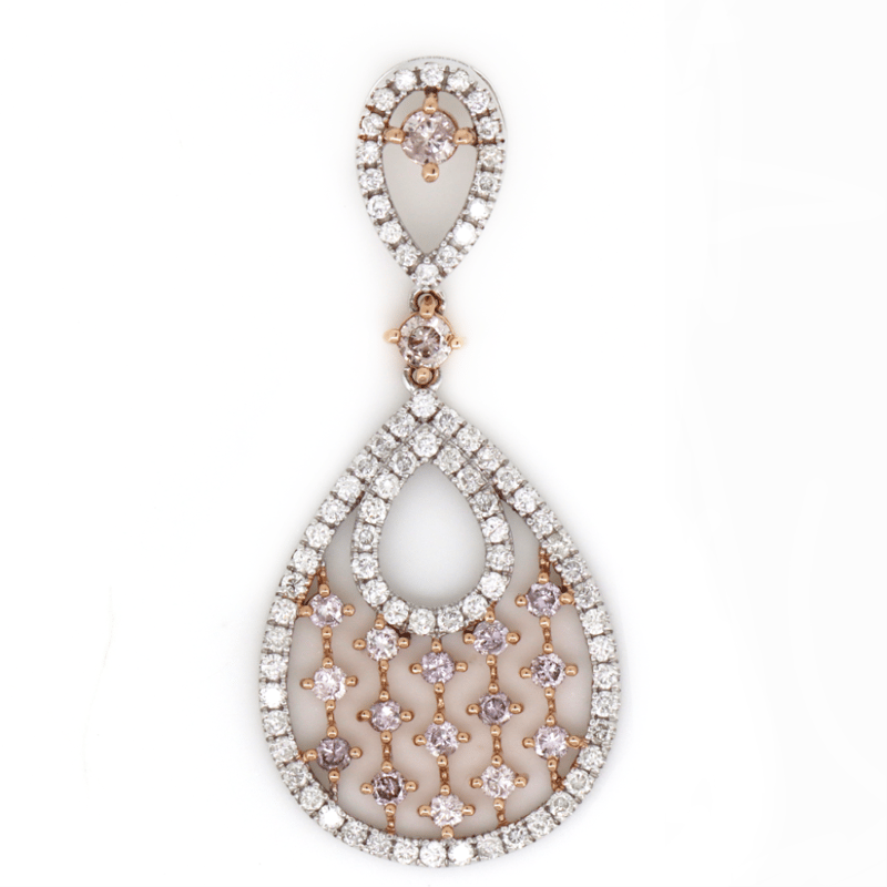 14K WHITE/ROSE GOLD, BLUSH PINK DIAMOND AND DIAMOND, HALO PENDANT. The Design Features, 17 Round Brilliant Cut, Fancy Blush Pink, Diamonds (0.63Ct Tdw, Si Clarity), Claw Set In Rose Gold. Encompassing The Design In A Halos And Decorating The Bail Are, 78 Round Brilliant Cut, Diamonds (0.83Ct Tdw, I-J Colour, P1-P2 Clarity), Micro-Bead/Pip-Claw Set. Valuations Provided by an Independent Third-Party Professional Not Directly Associated With Lloyds Auctions at AUD $$18,000.00This valuation has been conducted by an independent third-party professional. The valuation amount is an assessment by the issuing valuer and does not reflect the auction value of the item. Any inquiries regarding the valuation should be directed to the issuing valuer (refer to contact details on the certificate), as Lloyds Auctions has no affiliation or influence over the valuation, the valuer, or the stated amount. Condition: Good - Refer Images 0+153