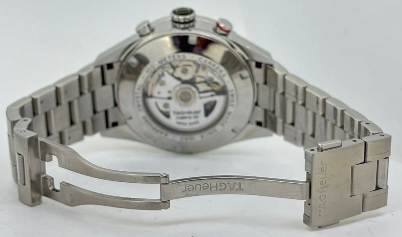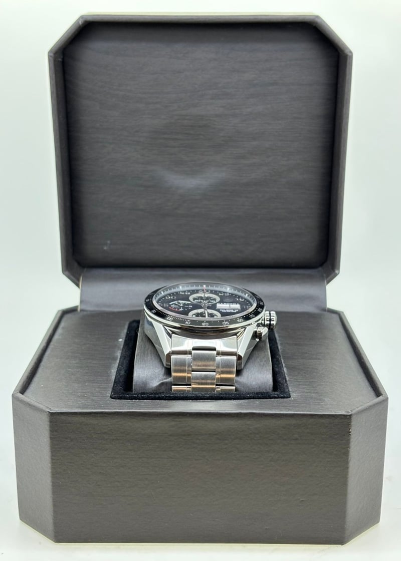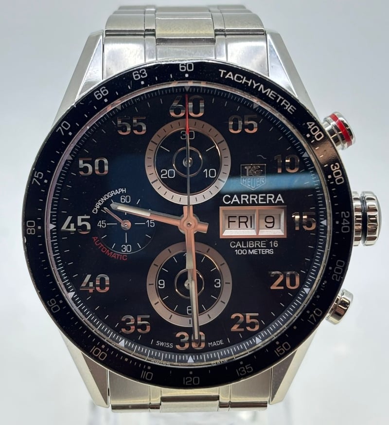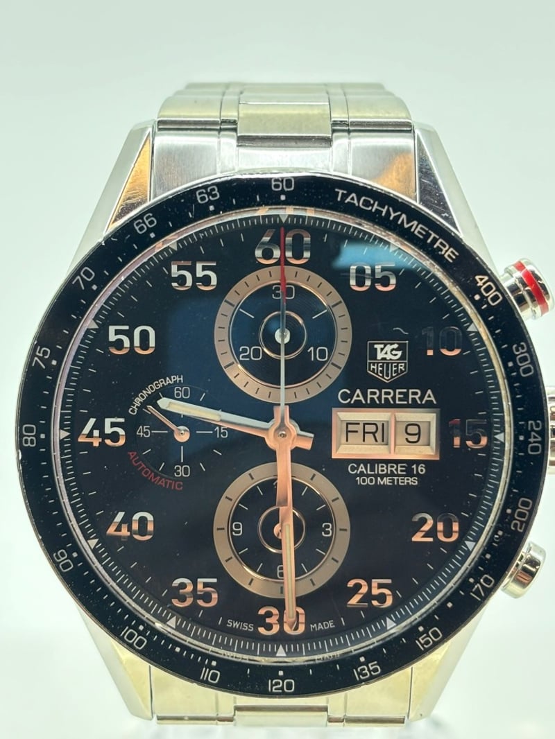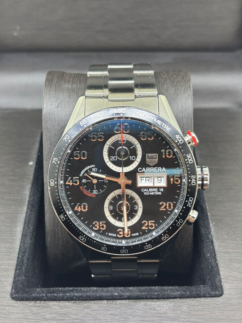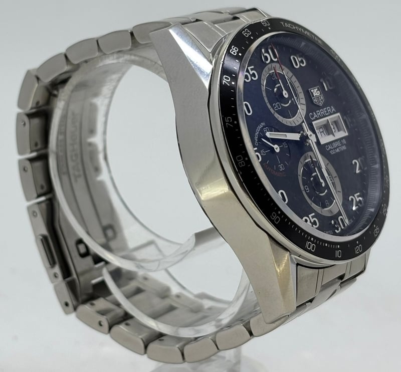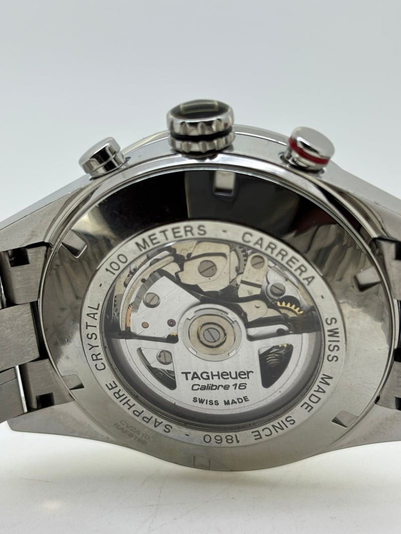 TAG HEUER CALIBRE 16 CV2A10.BA0796 2010 REFERENCE NO. CV2A10.BA0796PRODUCTION YEAR: 2010DIAL: BLACKCASE DESCRIPTION: STAINLESS STEELCASE SIZE: 44MMBRACELET: STAINLESS STEELMOVEMENT: AUTOMATICBOX: INCLUDEDPAPERS: NOT INCLUDEDAdditional Information: Features A Fixed Black Aluminum Tachymeter Bezel, Water Resistance Of 100 Meters488329+6
