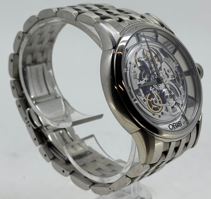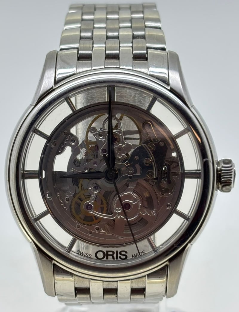 ORIS TRANSLUCENT ARTELEIR 01 734 7684 4051-07 8 21 77 2021 REFERENCE NO. 01 734 7684 4051-07 8 21 77PRODUCTION YEAR: 2021DIAL: SKELETONCASE DESCRIPTION: SKELETON, STAINLESS STEELCASE SIZE: 40.5MMBRACELET: STAINLESS STEELMOVEMENT: AUTOMATICBOX: INCLUDEDPAPERS: NOT INCLUDED488329+7