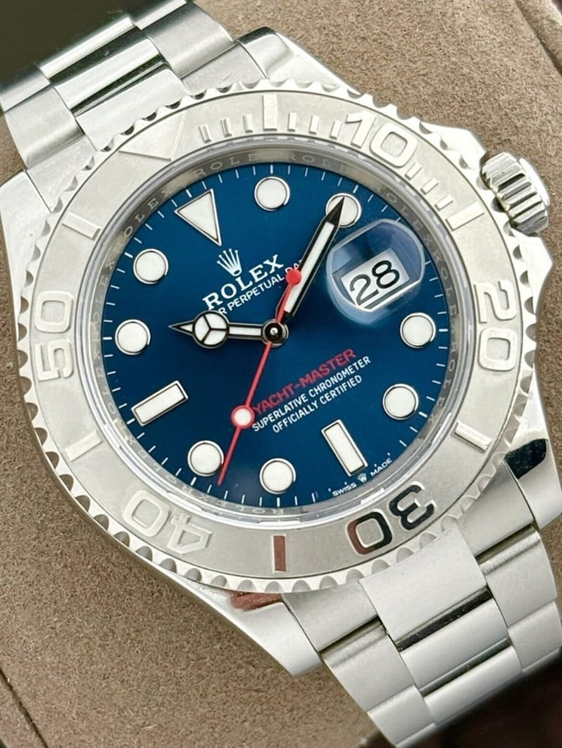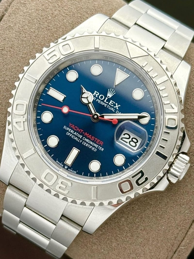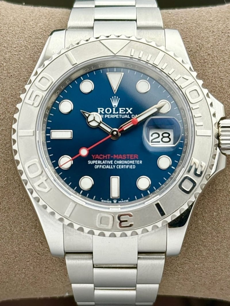 ROLEX YACHT-MASTER 40 BLUE DIAL PLATINUM & STEEL 126622 | 2022 | 40MM Price Guide - $23,000 - $28,000 Brand : Rolex Reference : 126622 Model : Yacht-Master 40 Year : 2022 Condition : Mint Case Size : 40Mm Power Reserve : 70H Dial : Blue Bezel : Platinum Case : Steel Bracelet : Steel Papers : Yes Box : Yes 488259+1