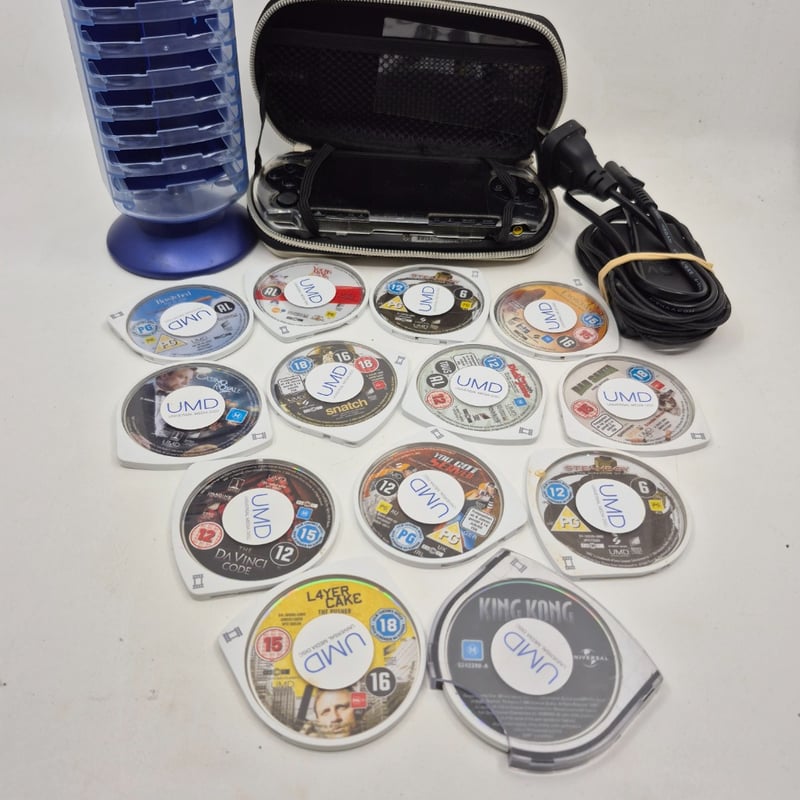 PSP UMD GAME COLLECTION WITH STORAGE TOWER AND ACCESSORIES