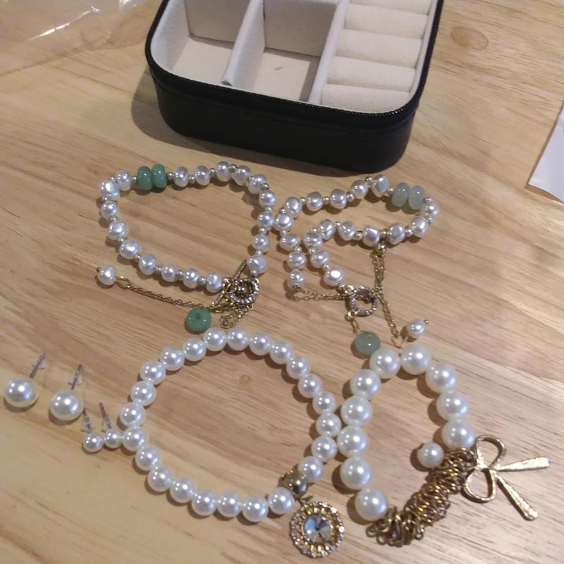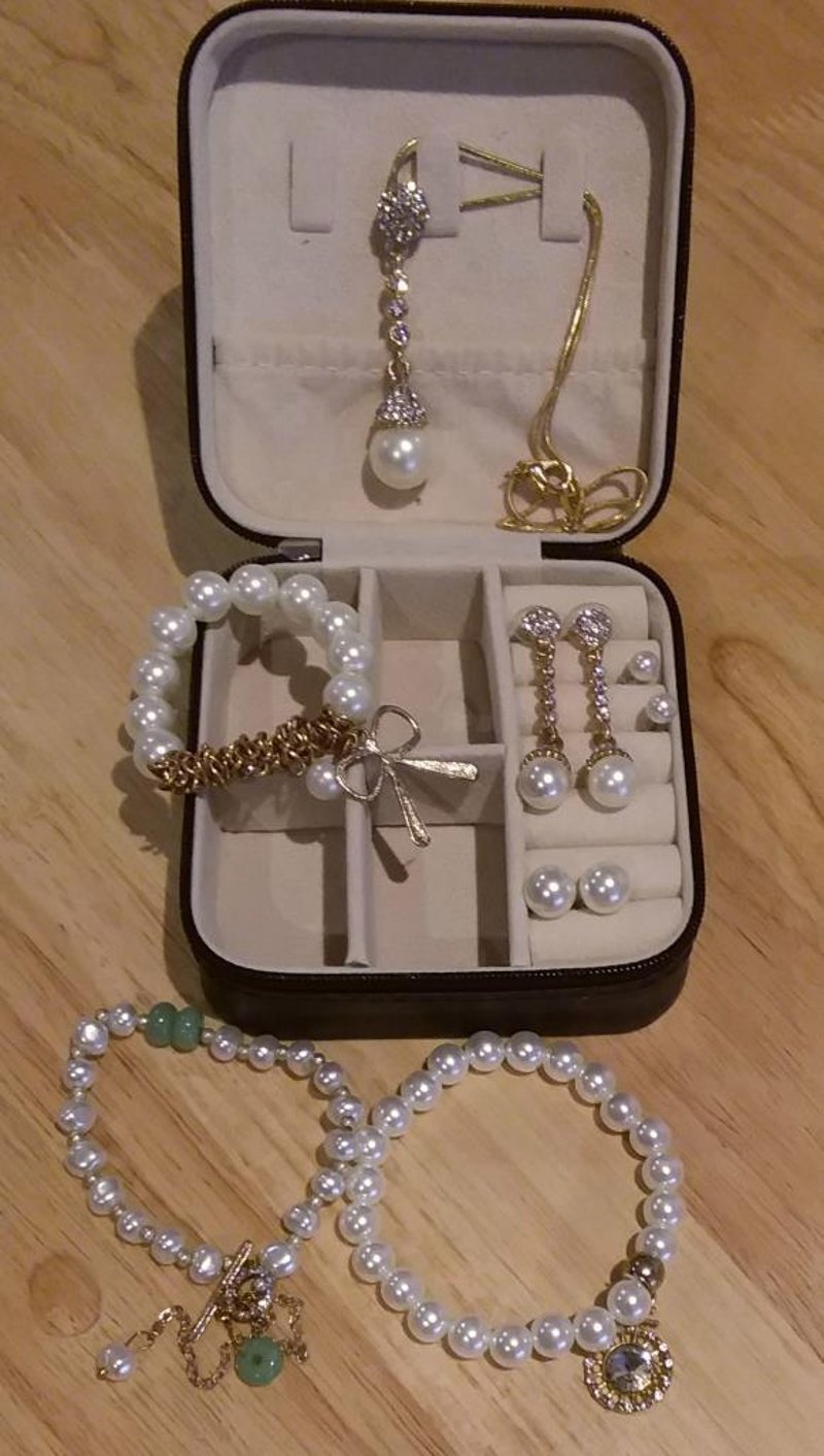 JEWELRY BOX WITH ASSORTED FAUX PEARL JEWELRY