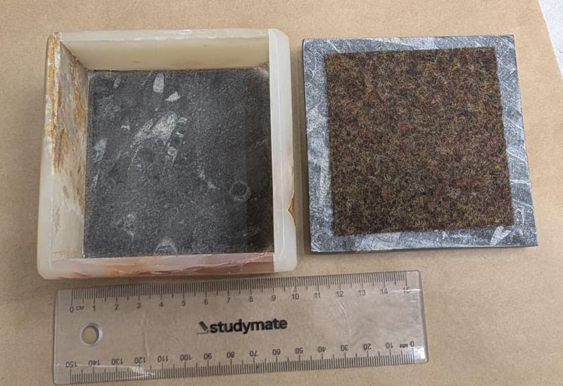 JEWELLERY BOX MADE FROM 400 MILLION YEAR OLD FOSSIL FILLED MARBLE FROM MOROCCOJewellery Box Made From 400 Million Year Old Fossil Filled Marble From MoroccoSize: 1Condition: Good - Refer To Images585007+8