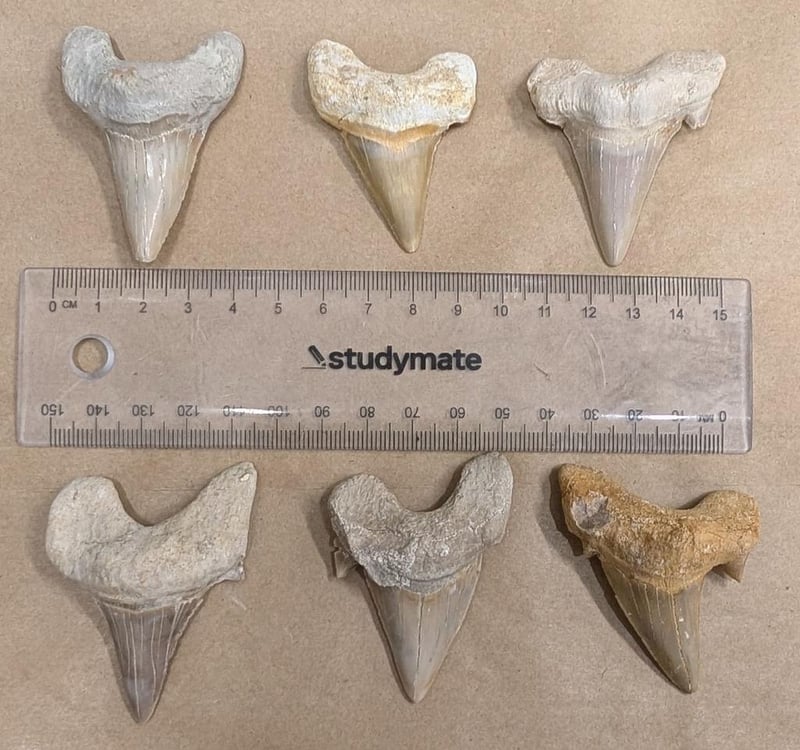 SIX HUGE 40 MILLION YEAR OLD FOSSIL OTODUS SHARK TEETH FROM MOROCCO