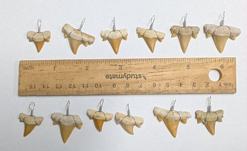 Dozen 40 Million Year Old Fossil Shark Teeth From Morocco Wire Wrapped Into Pendants