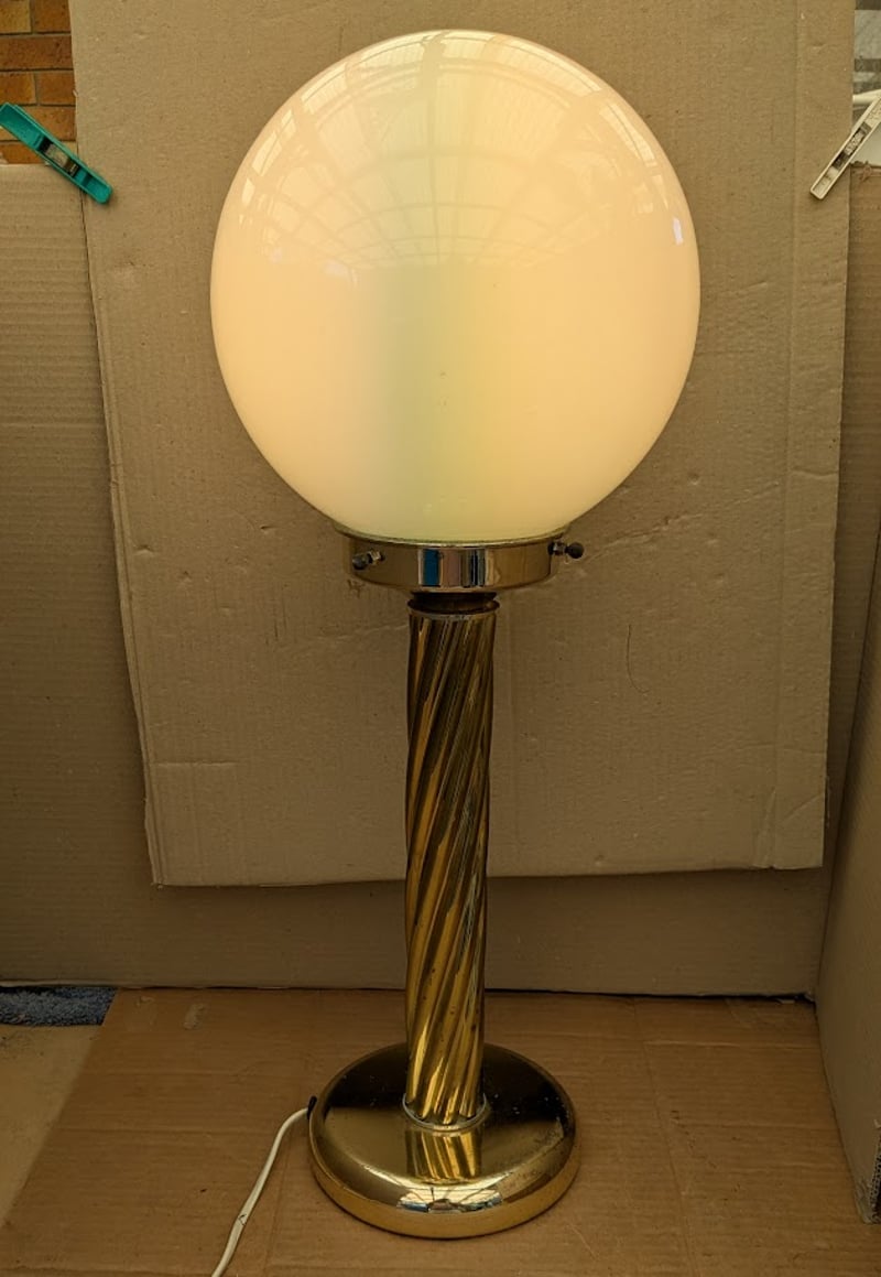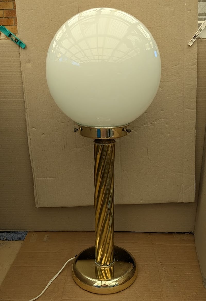 ART DECO FLOOR TABLE LAMP WITH BRASS STEM AND BASE