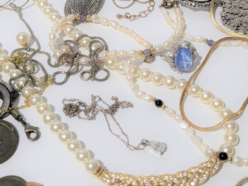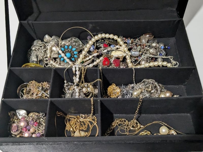 ASSORTED COSTUME JEWELLERY IN VELVET JEWELLERY BOXSize: 25cm x 19cm x 7cmCondition: Good - Refer To Images+1