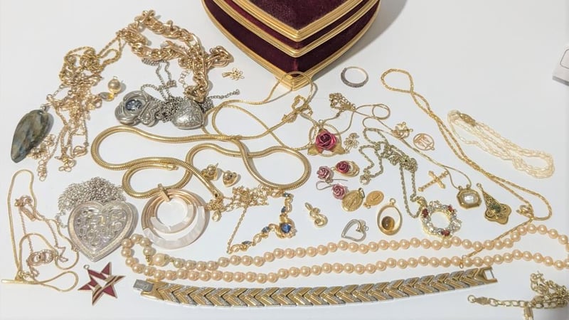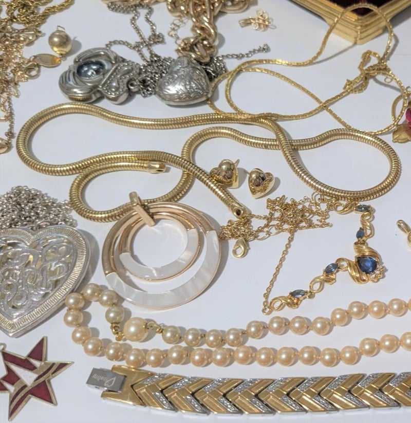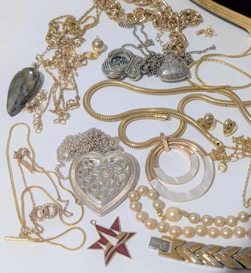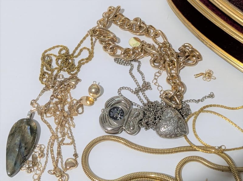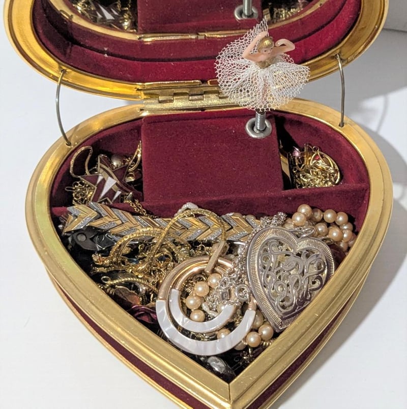 ASSORTED COSTUME JEWELLERY IN HEART SHAPED MUSICAL JEWELLERY BOX