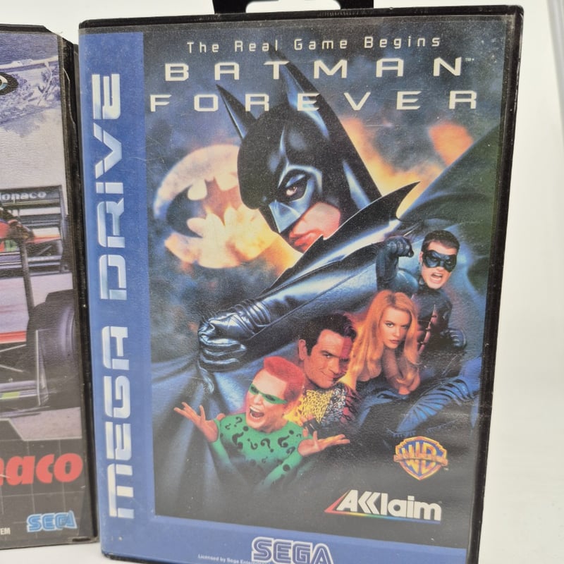 Last Battle (Action), Super Monaco Gp (Racing), And Batman Forever (Action/Adventure). All Games Retain Original Black Clamshell Cases With Printed Artwork And Spine Labels.