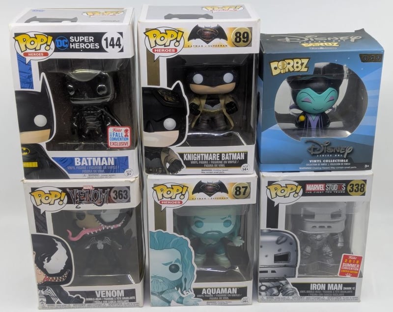FIVE FUNKO POP COLLECTOR FIGURES AND DORBZ DISNEY SERIES FIGURE