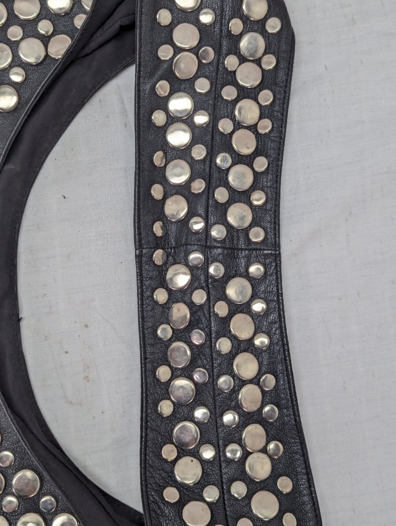 BLACK LEATHER STYLE SHOULDER BAG WITH METAL DISCS