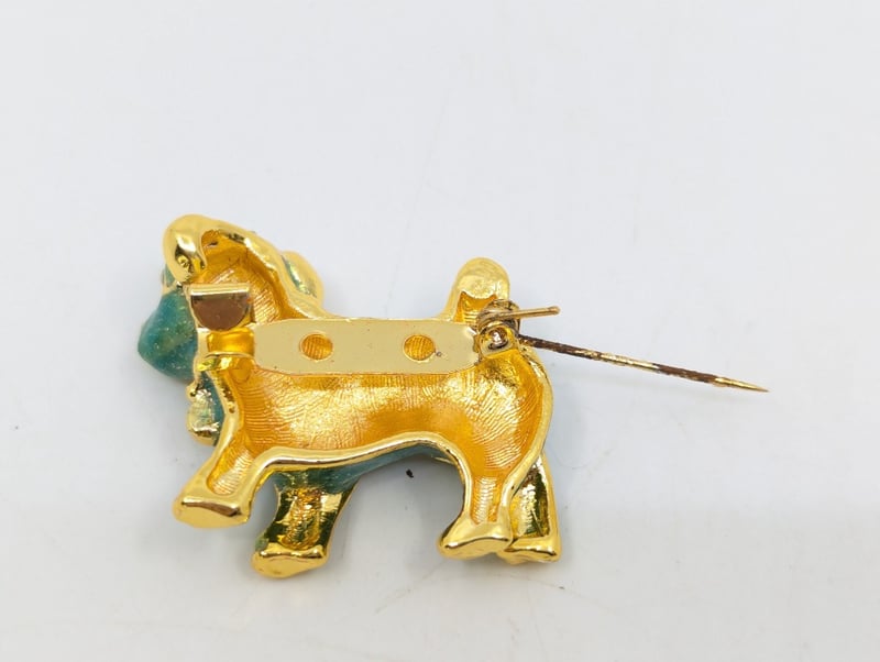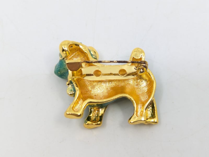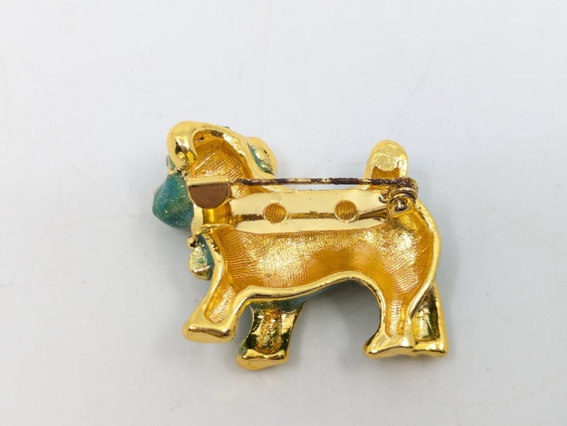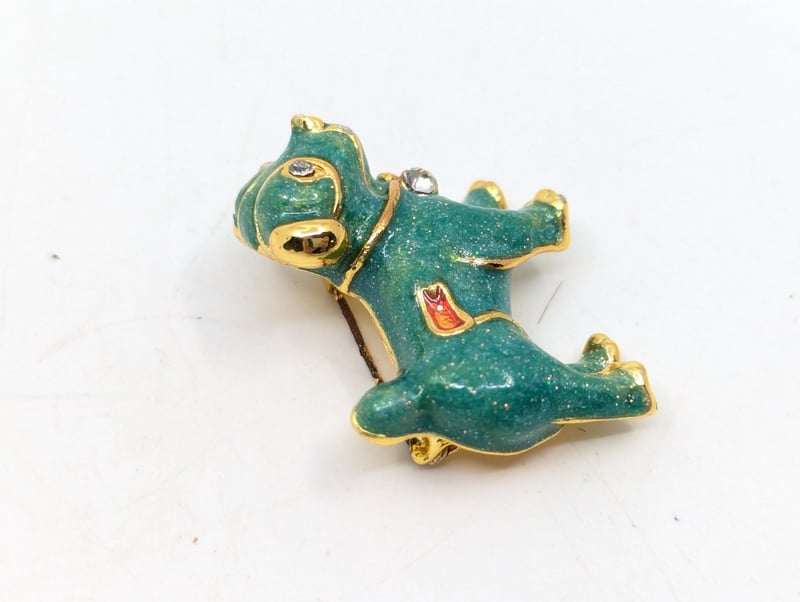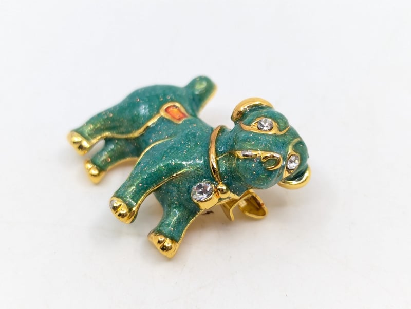 Dog Features Green Exterior Colour With Faux Gold Lining, White Glass Stone Eyes And Collar Decoration