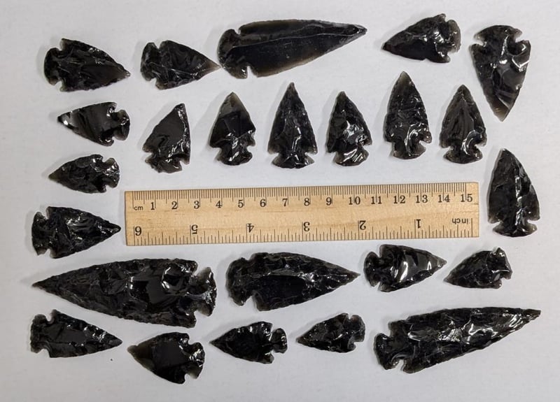 TWO DOZEN OBSIDIAN STONE ARROWHEADSTwo Dozen Obsidian Stone ArrowheadsCondition: Good - Refer To Images585038+31