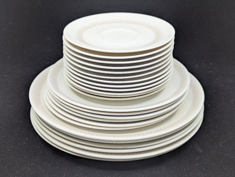 Items Include Dinner Plates, Side Plates, Saucers, Serving Bowls, Gravy Jug And Plate, Dual Handle Teacups, Serving Plates
