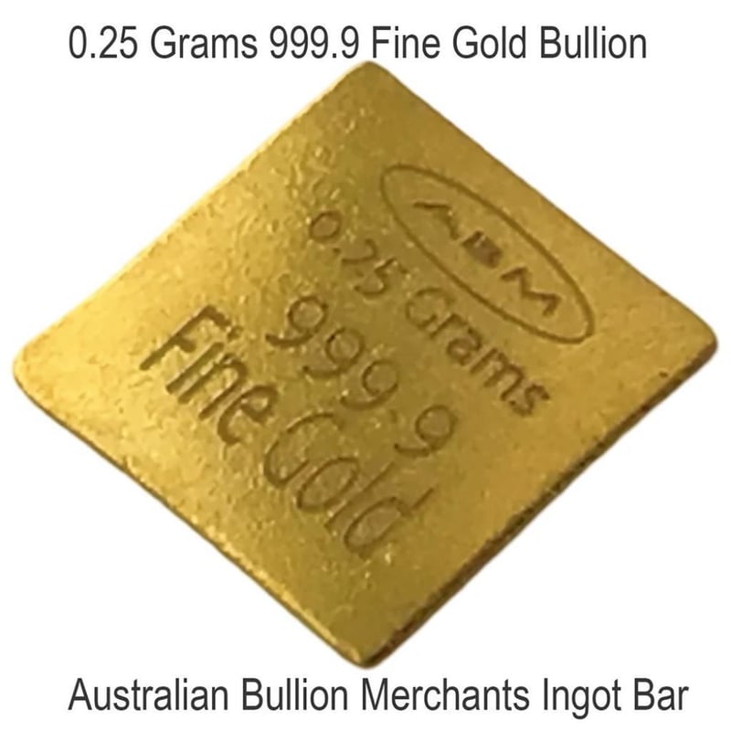 0.25 GRAMS 999.5 FINE SOLID GOLD CERTIFIED BULLION BAR ABM 311151+58
