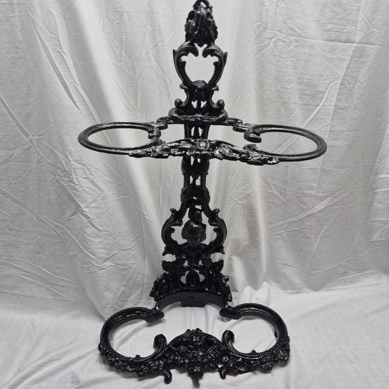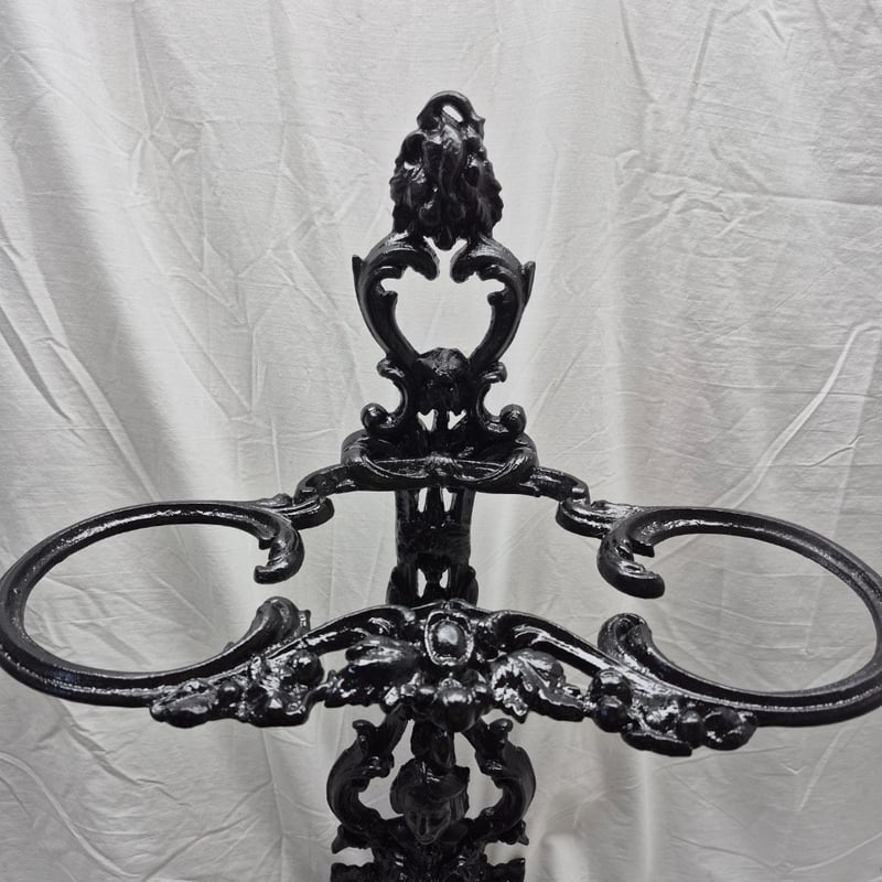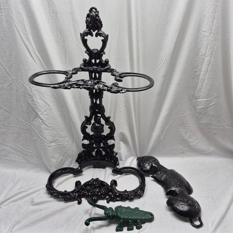 VINTAGE CAST ALUMINIUM UMBRELLA STAND AND ANTIQUE CAST IRON "BEETLE"BOOT PULLER