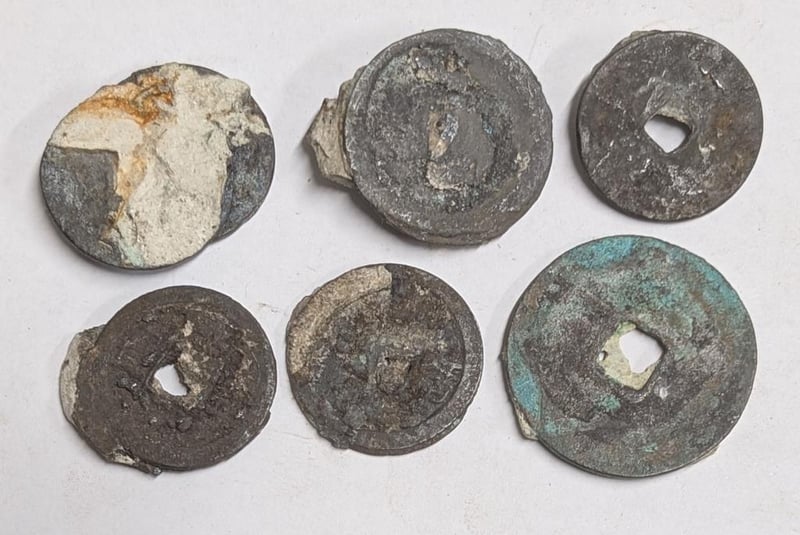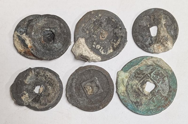 COIN COLLECTION OF SEVEN 900 YEAR OLD SHIPWRECK COINSThese Are Song Dynasty Chinese Cash Coins. They All Have Some Sediment Buildup (Two Are Stuck Together). One Is A Scarce 10 Cash Coin Issued In The Late 1100S (So Wreck Has To Be Close To 1200Ad Or Later). Note Corrosion, Sediment Buildup And Abnormal Wearing Patterns.Coins Were Found On An Unidentified Shipwreck In The South China Sea. It Was Probably A Merchant Ship - One Of Many That Plied Up And Down The East Asian Coast That Was Often Not Properly Seaworthy. Coin Has Sediment Buildup And Corrosion As You Would Expect From Spending Hundreds Of Years Underwater. A Great Item For Coin And Artifact Collectors. Size: 1Condition: Good - Refer To Images585007+23