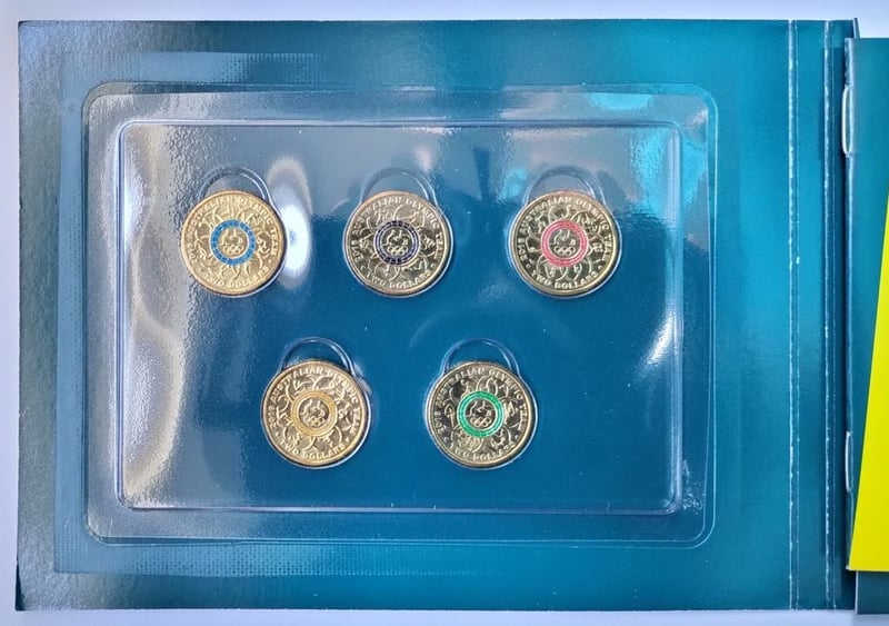 2016 AUSTRALIAN OLYMPIC TEAM 5 COLOURED $2 COINS COLLECTION