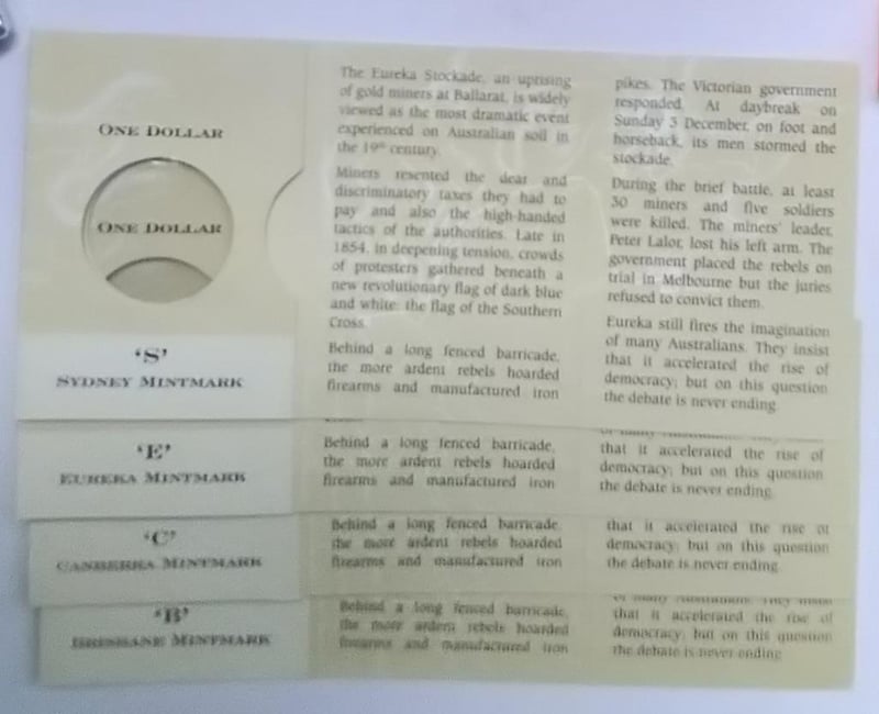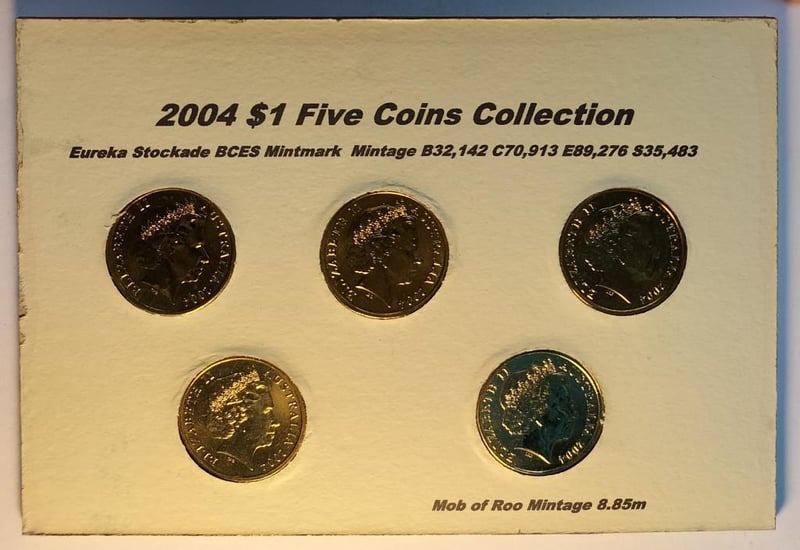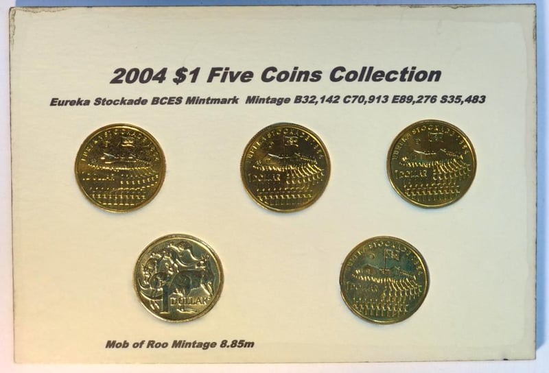 2004 FIVE $1 COINS COLLECTION EUREKA BCES MINTMARK & MOB OF ROOS Condition: UNCEx Mint Roll488357+4