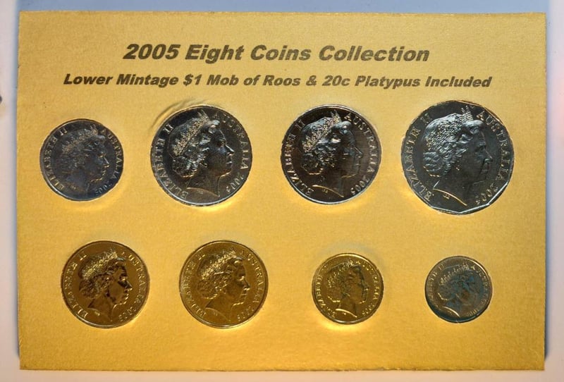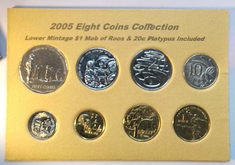 2005 EIGHT COINS COLLECTION LOWER MINTAGE $1 MOB OF ROOS & 20C PLATYPUS INCLUDED Condition: UNCEx Mint Roll488357+5