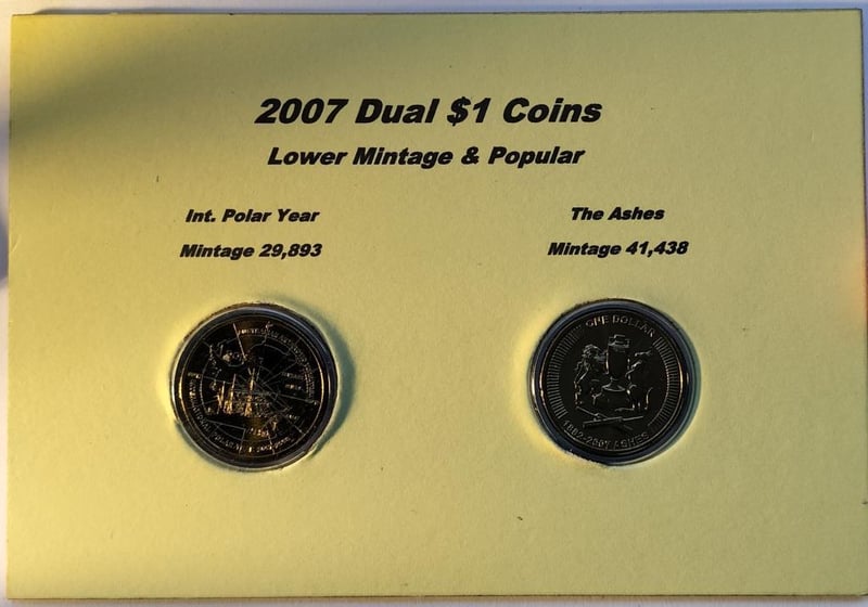 2007 DUAL $1 COINS LOWER MINTAGE & POPULAR $1 INT. POLAR YEAR & THE ASHES