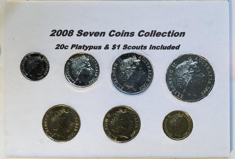 2008 SEVEN COINS COLLECTION $1 SCOUTING & 20C PLATYHPUS (REPLACE) INCLUDED