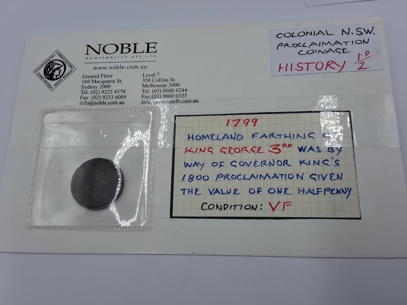 COLONIAL AUSTRALIA : 1799 KING GEORGE 3RD FARTHING DOUBLED IN VALUE BY PROCLAIMATION (CONDITION VF) - HISTORY
