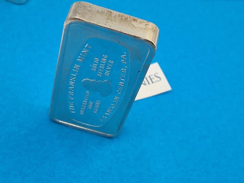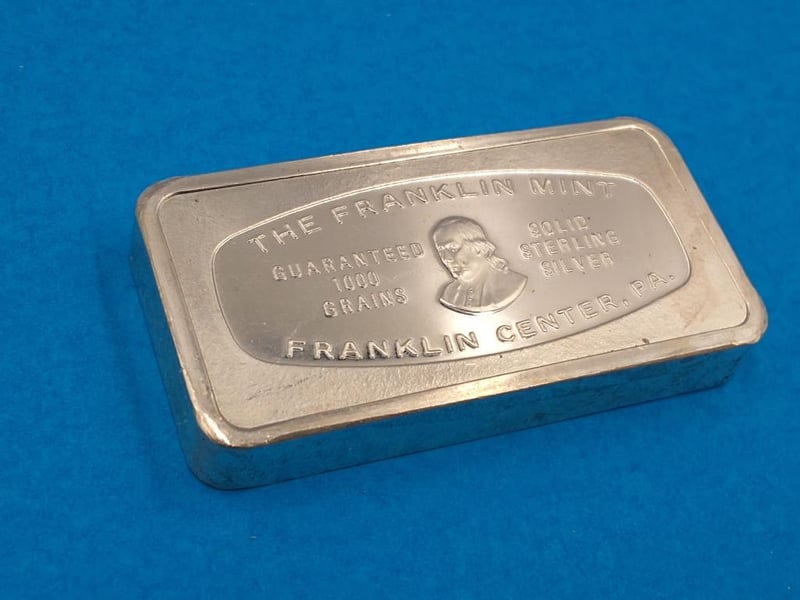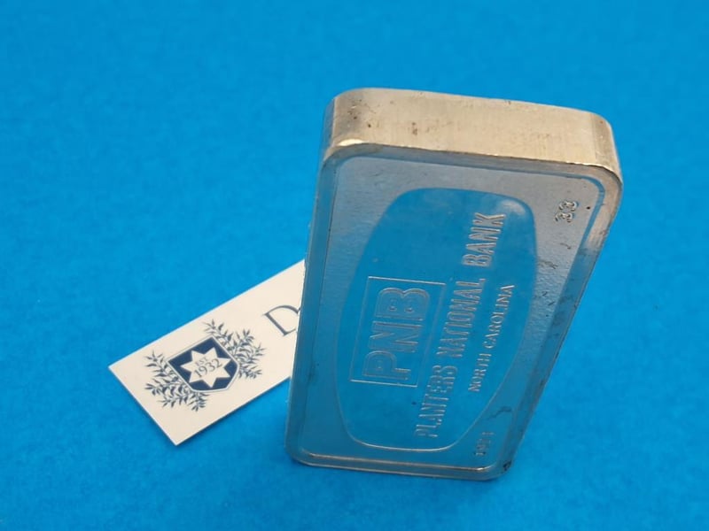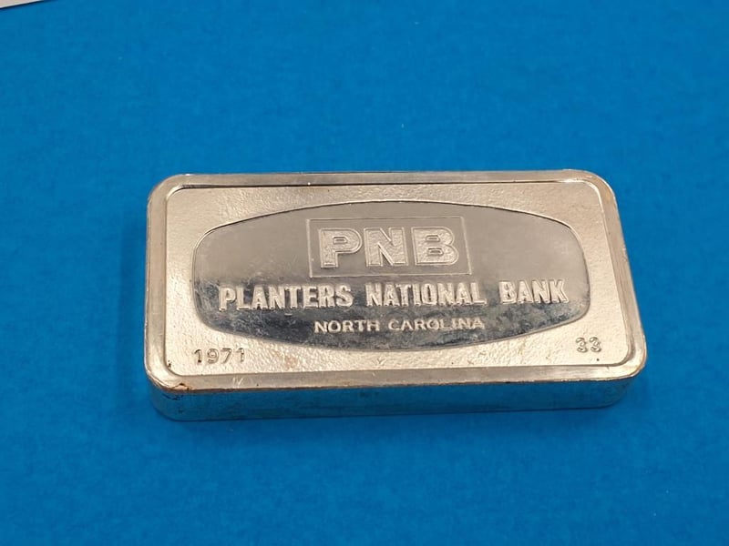 BULLION : SOLID STERLING SILVER 1,000 GRAINS BAR PROVENENCE : "PNB , NORTH CAROLINA" EX "DOWNIES" , STUCK BY THE FRANKLIN MINT AS A PROOF.