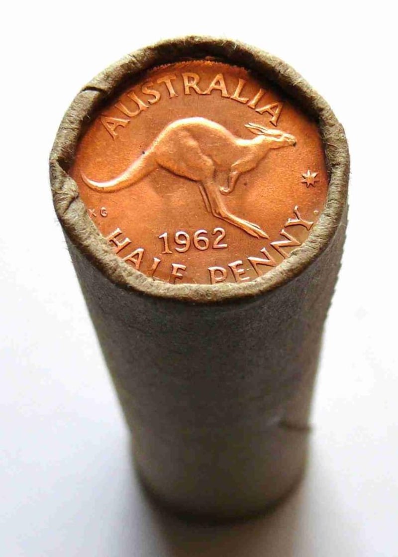 ROLL OF 1962 QEII, AUSTRALIAN HALF PENNY (50X CIRCULATED COINS IN A ROLL). 488361+22