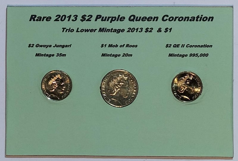 2013 RARE $2 PURPLE QUEEN CORONATION TRIO LOWER MINTAGE 2013 $2 & $1