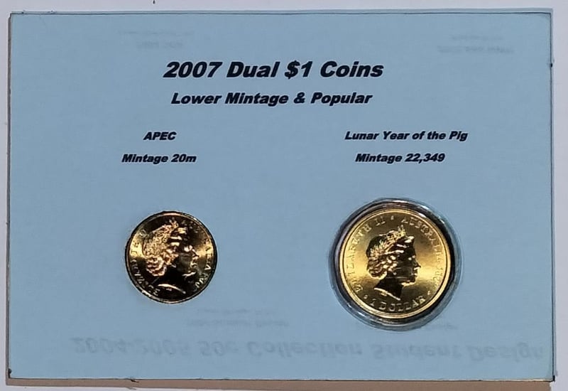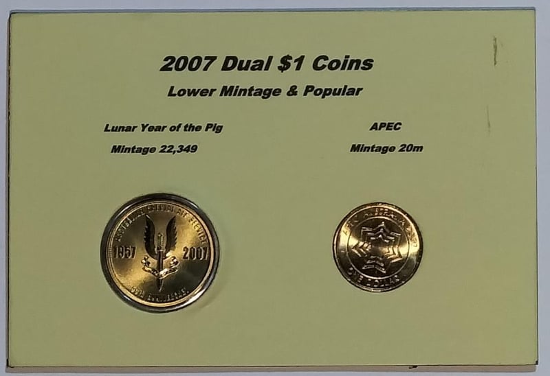 2007 DUAL $1 COINS ROYAL AUSTRALIAN MINT $1 VS PERTH MINT $1 Condition: UNCEx Mint Roll/Folder488376+4