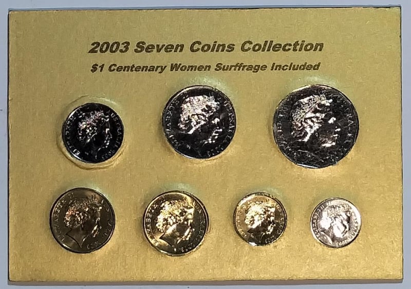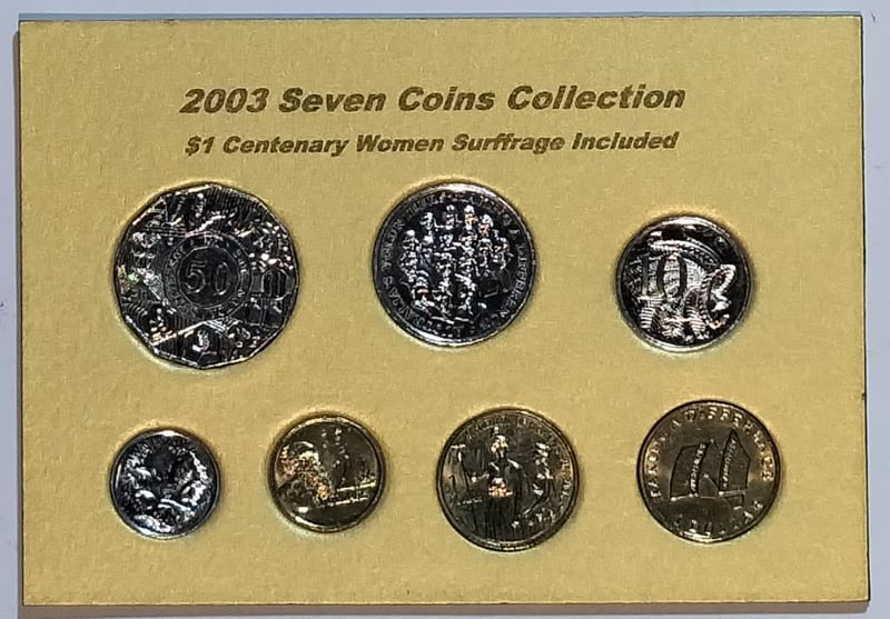 2003 SEVEN COINS COLLECTION $1 CENTENARY WOMEN SURFFRAGE INCLUDED Condition: UNCEx Mint Roll488376+7