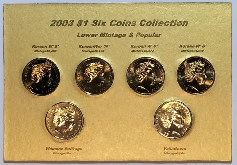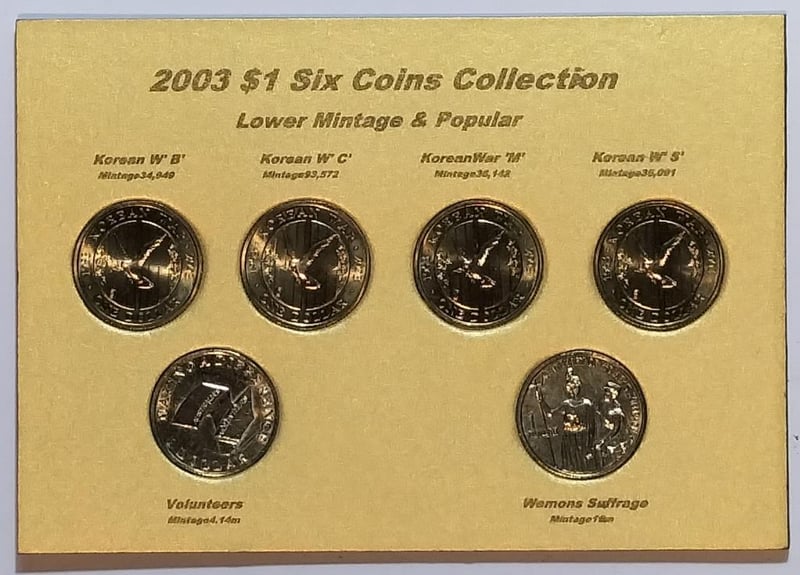 2003 SIX $1 COINS COLLECTION LOWER MINTAGE & POPULAR KOREAN WAR VOLUNTEERS & WEMONS SUFFRAGE