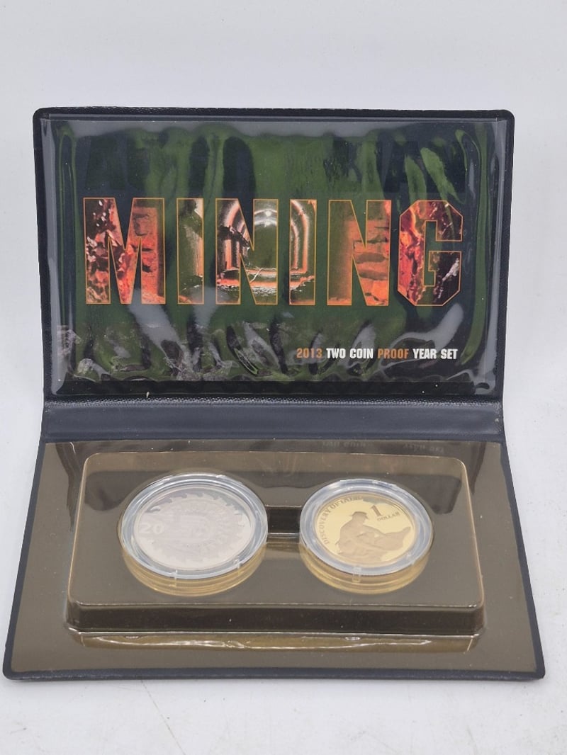 2013 AUSTRALIAN MINING TWO COIN PROOF YEAR SET Official 2013 Two Coin Proof Year Set From The Royal Australian Mint, Presented In Original Black Presentation Case. Condition: Proof VAULT 587746+3
