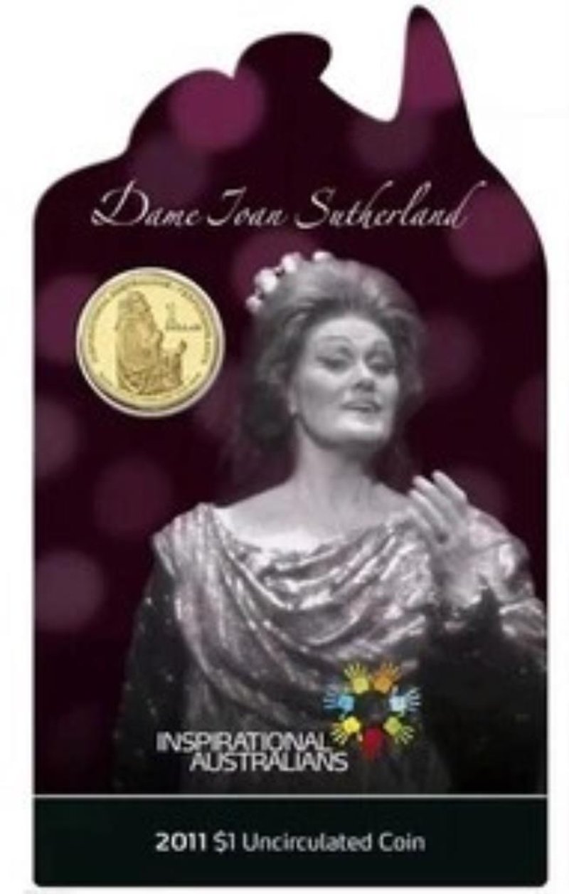 2011 $1 RAM INSPIRATIONAL AUSTRALIANS DAME JOAN SUTHERLAND UNC CARDED COIN