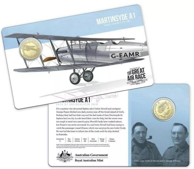 2020 $1 CENTENARY OF THE GREAT AIR RACE - ENGLAND TO AUSTRALIA - MARTINSYDE A1 294137+9