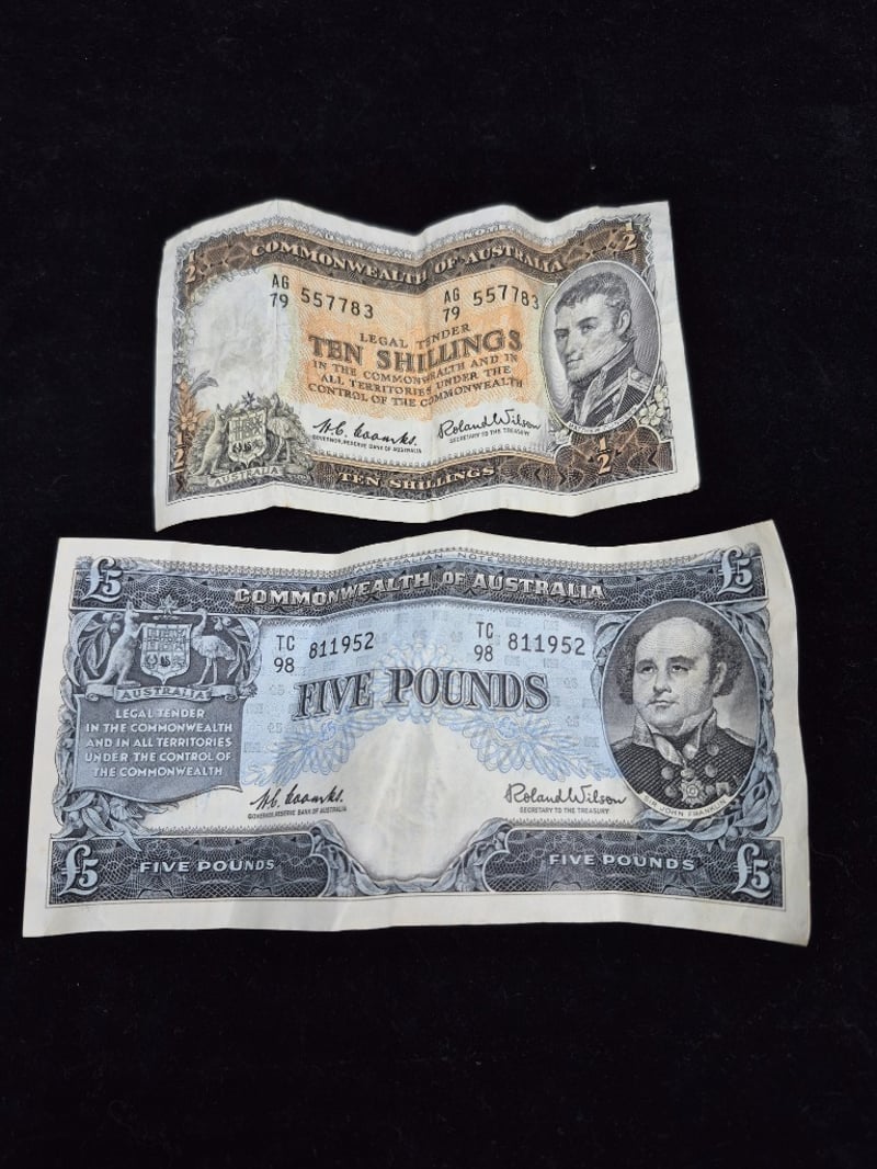 AUSTRALIAN TEN SHILLINGS AND £5 POUND NOTEMixed ConditionVAULT587760+1