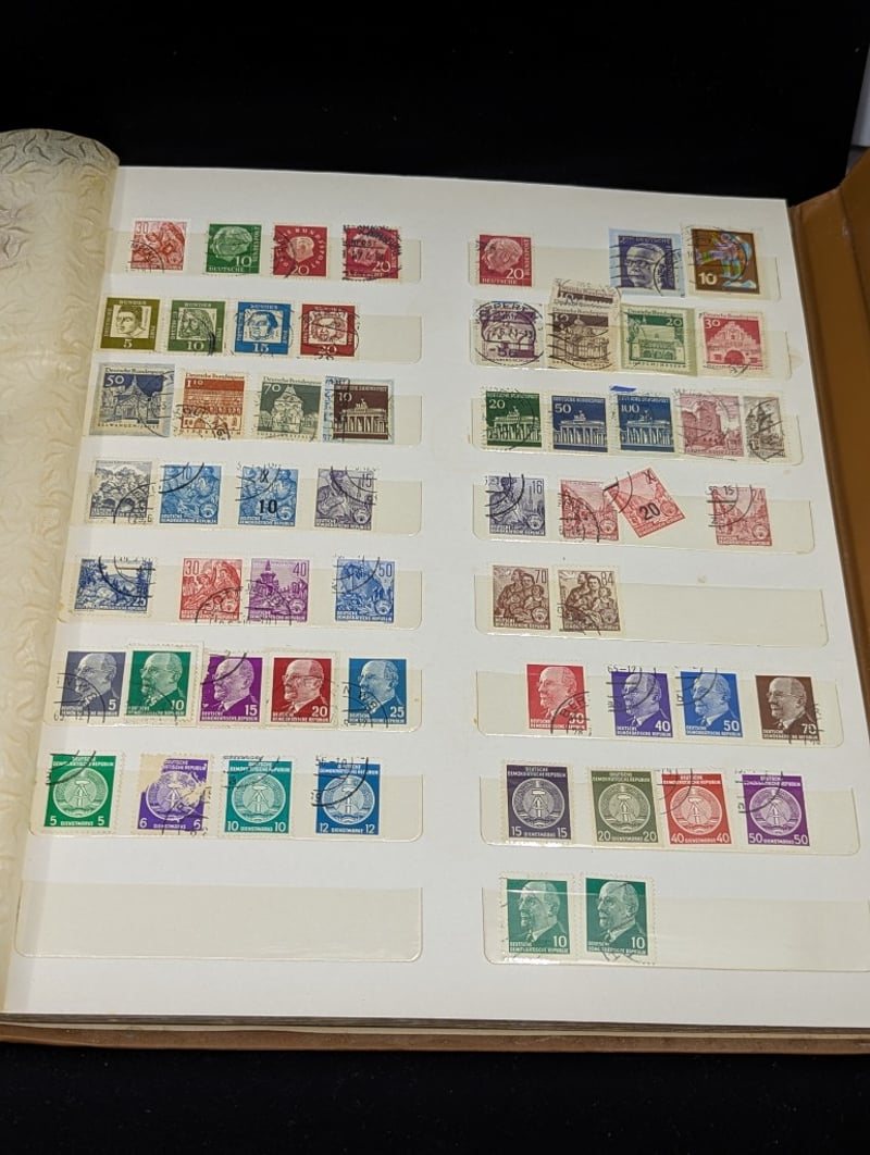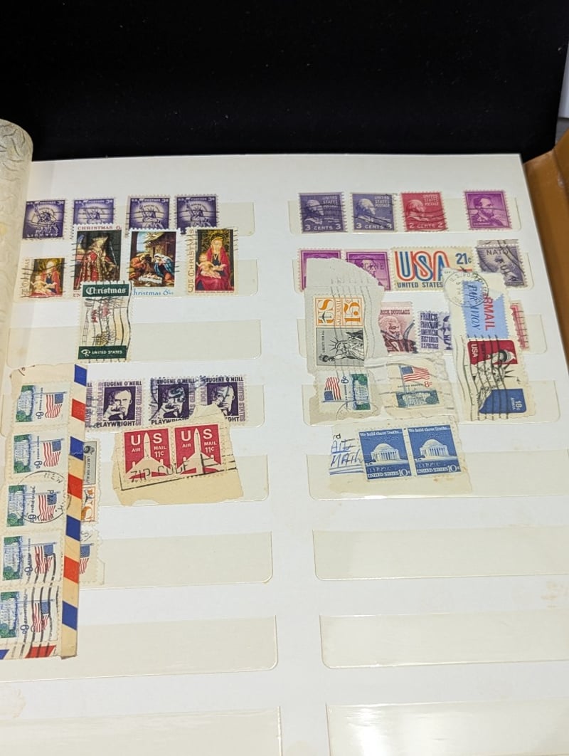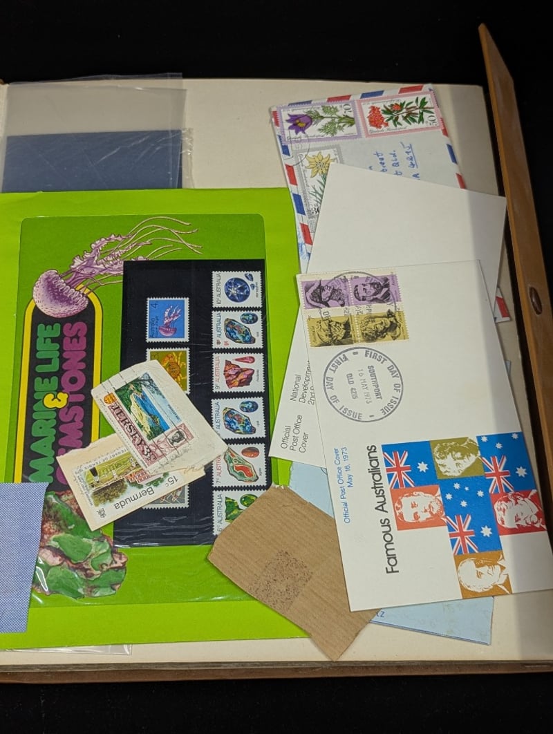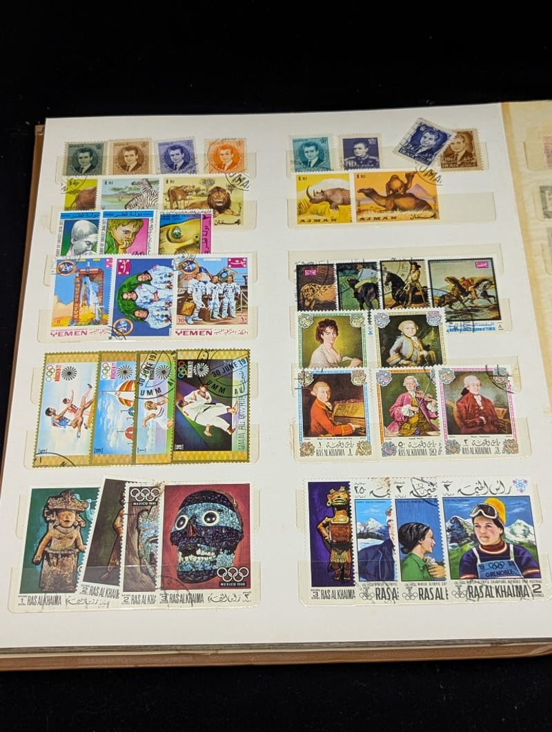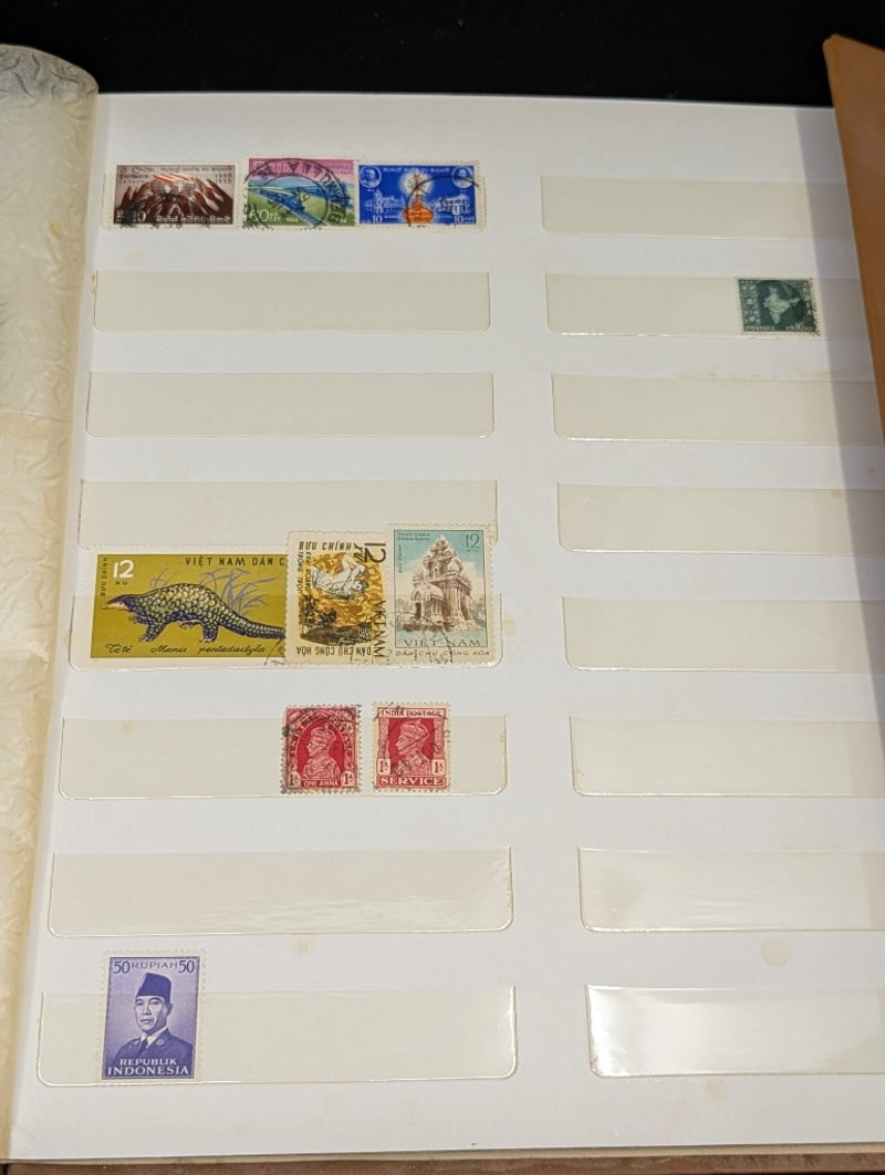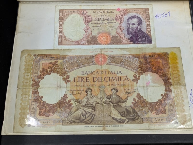 COLLECTION OF WORLD BANKNOTES, COINS AND STAMPS IN ALBUM