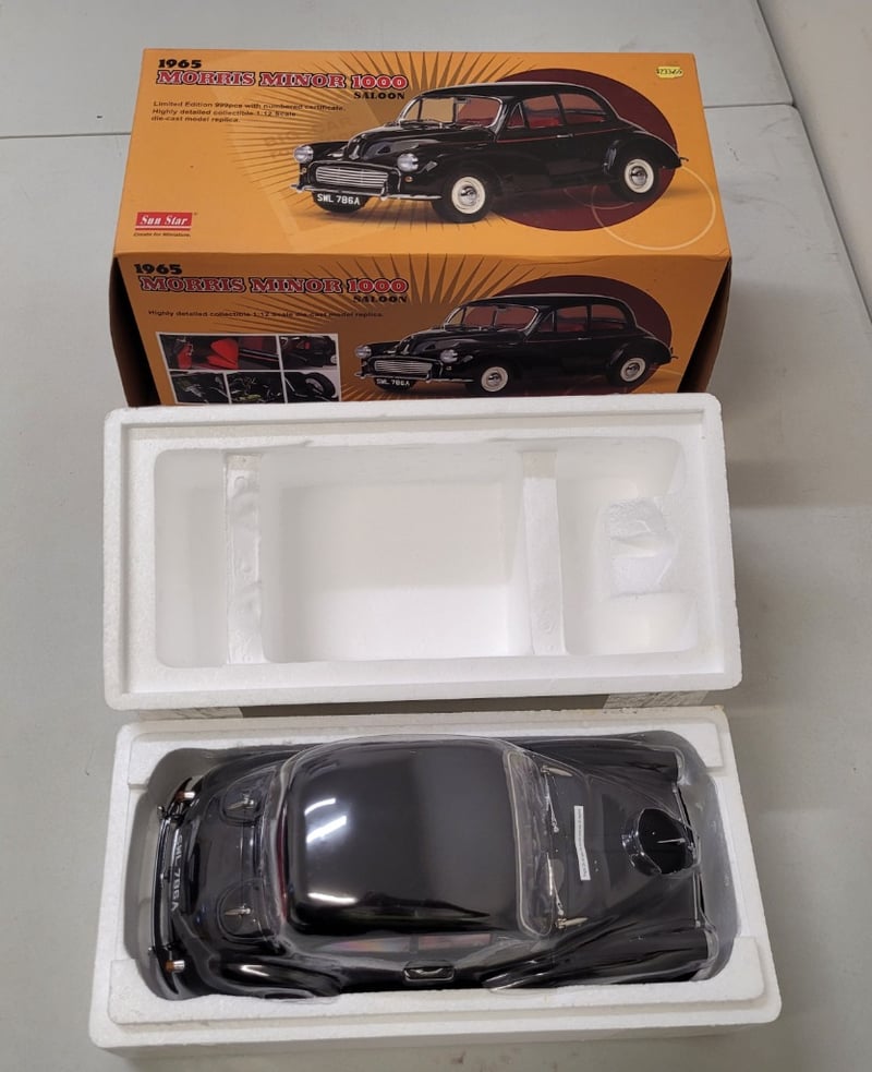 1965 MORRIS MINOR 1000 SALOON FROM SUN STAR. SCALE: 1:12. CERTIFICATE NO. 329 OF 999.