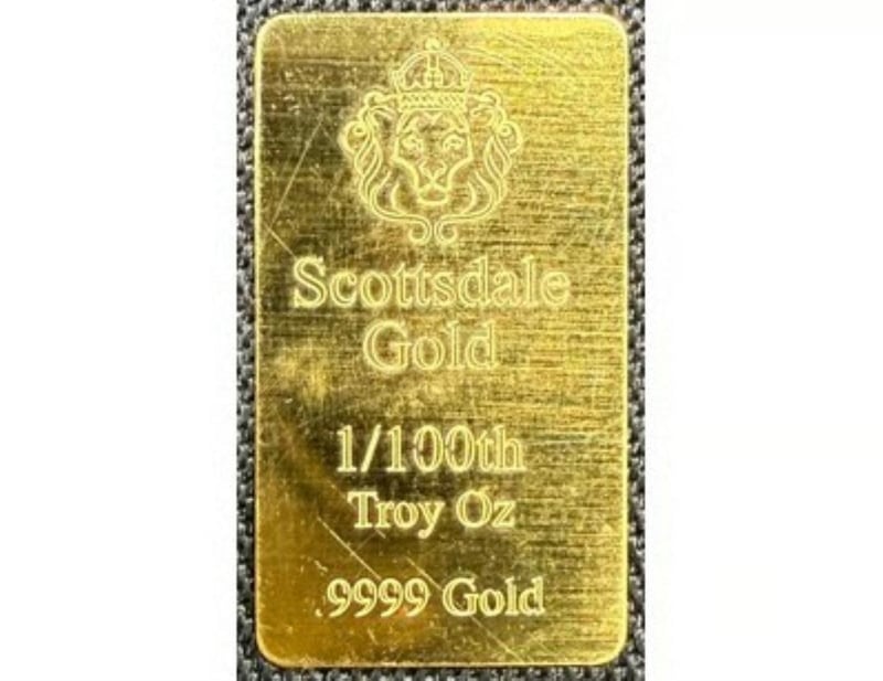 SCOTTSDALE LION 1/100OZ 9999 GOLD BULLION BAR 311092+18