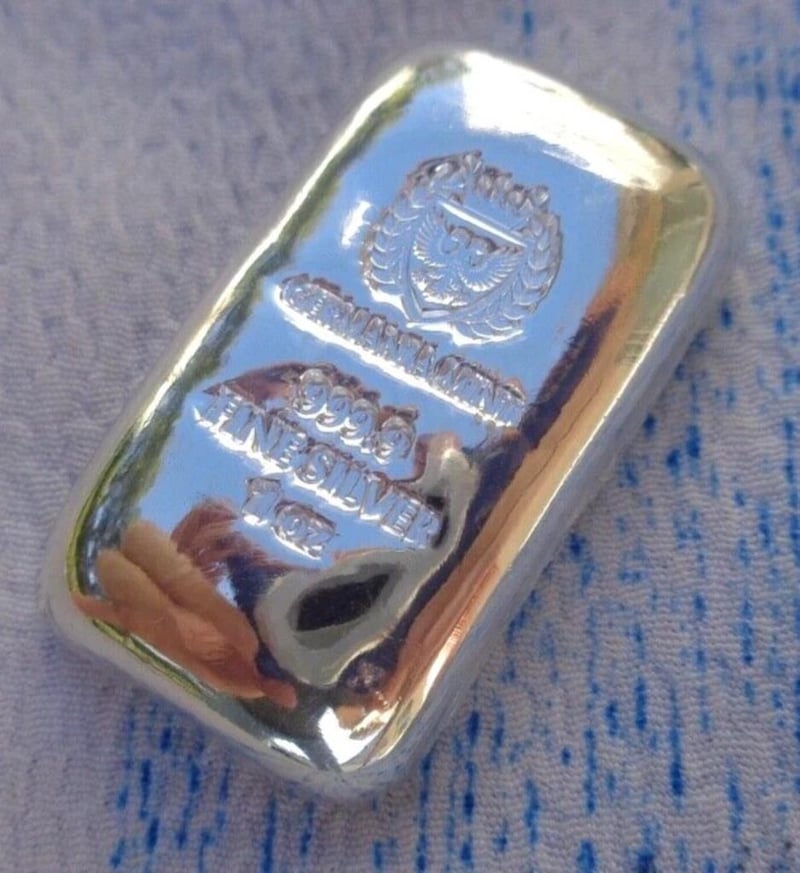 1OZ SILVER 999.9 GERMANIA MINT CAST BAR